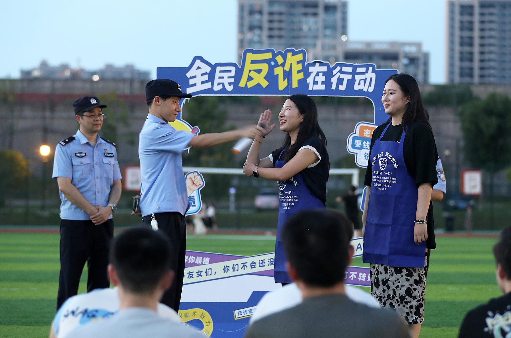 9月16日傍晚,湖北省沙洋县公安局在陈家山社区广场开展“反诈厨娘”主题网络安全宣传活动。活动现场,民警通过趣味知识竞答向居民讲解防范网络诈骗知识,并为现场群众发放印有反诈标语的围裙,让厨房用具化身“流动宣传员”。