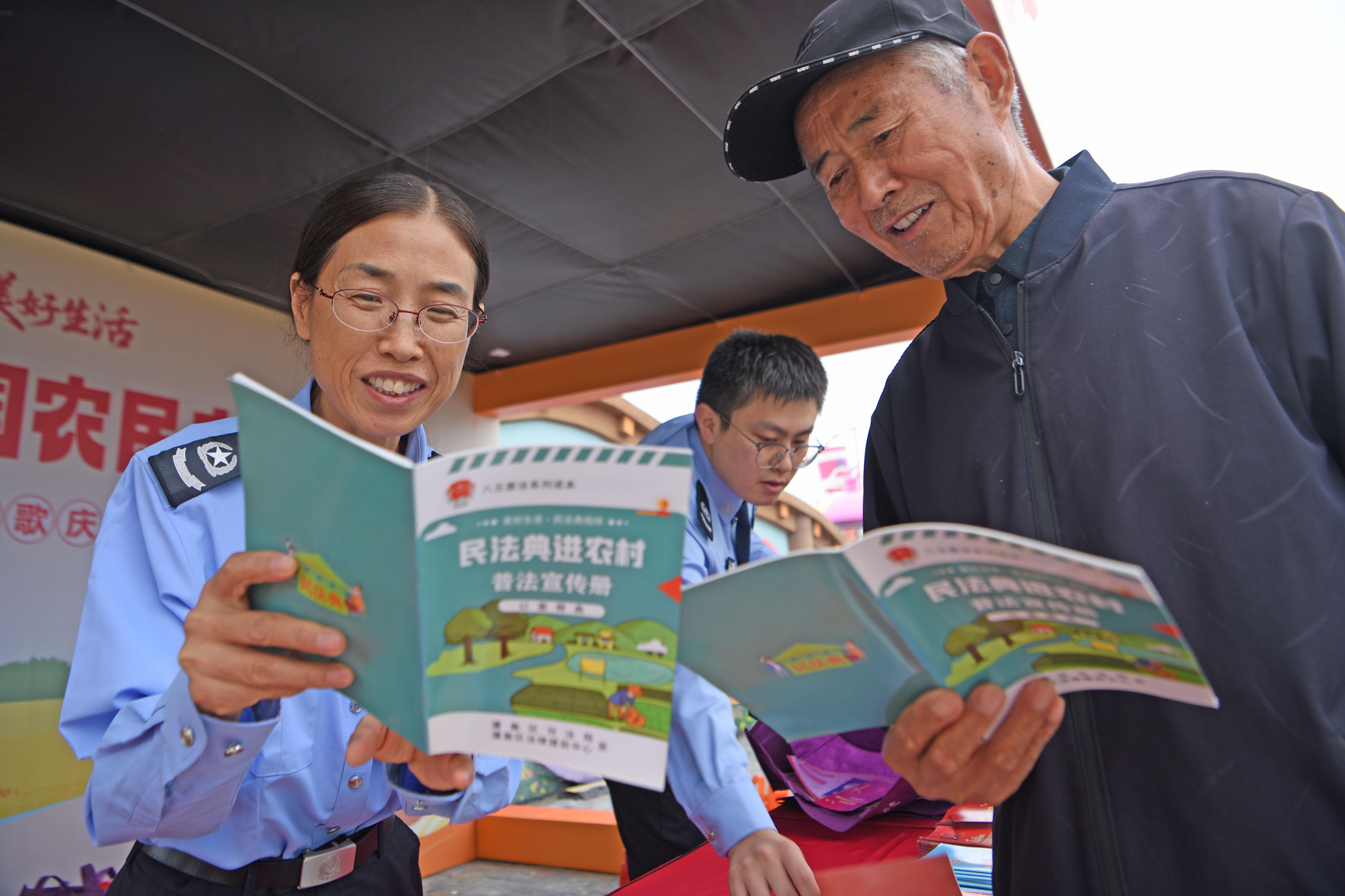 9月23日,安徽省淮南市潘集区司法局工作人员在淮南市2025年中国农民丰收节活动现场向群众普及涉农法律法规。