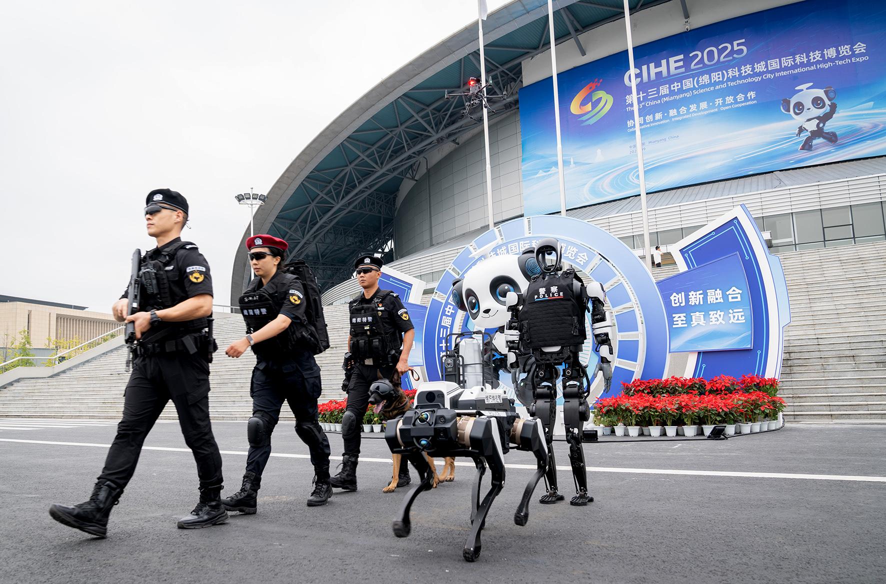 9月26日,第十三届中国(绵阳)科技城国际科技博览会开幕。四川省绵阳市公安局组织警力,全力筑牢科博会安全屏障。值得一提的是,警用机器狗、人形巡逻机器人、无人巡逻车及空中无人机的加入,为巡逻防控工作注入了全新的科技活力。