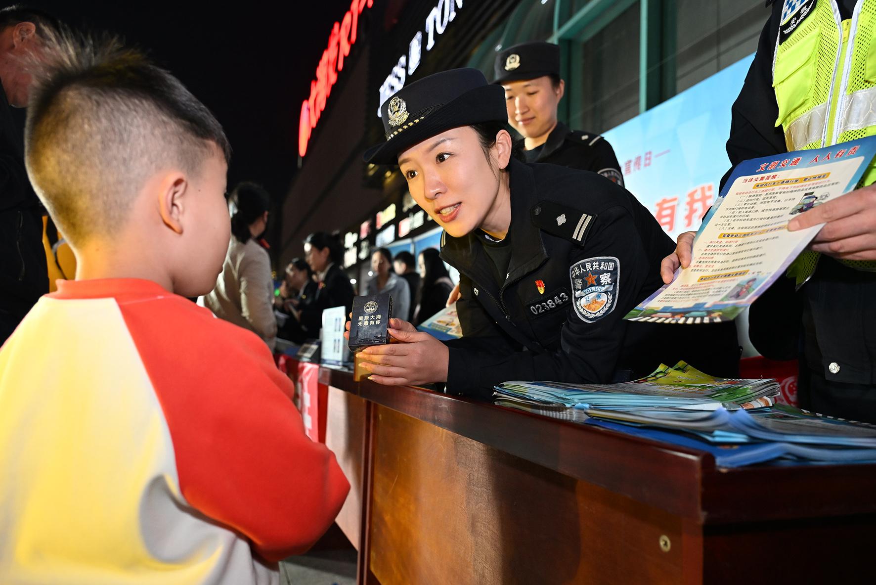 10月28日晚,安徽省当涂县公安局联合当涂义警在大润发超市广场开展平安建设宣传月