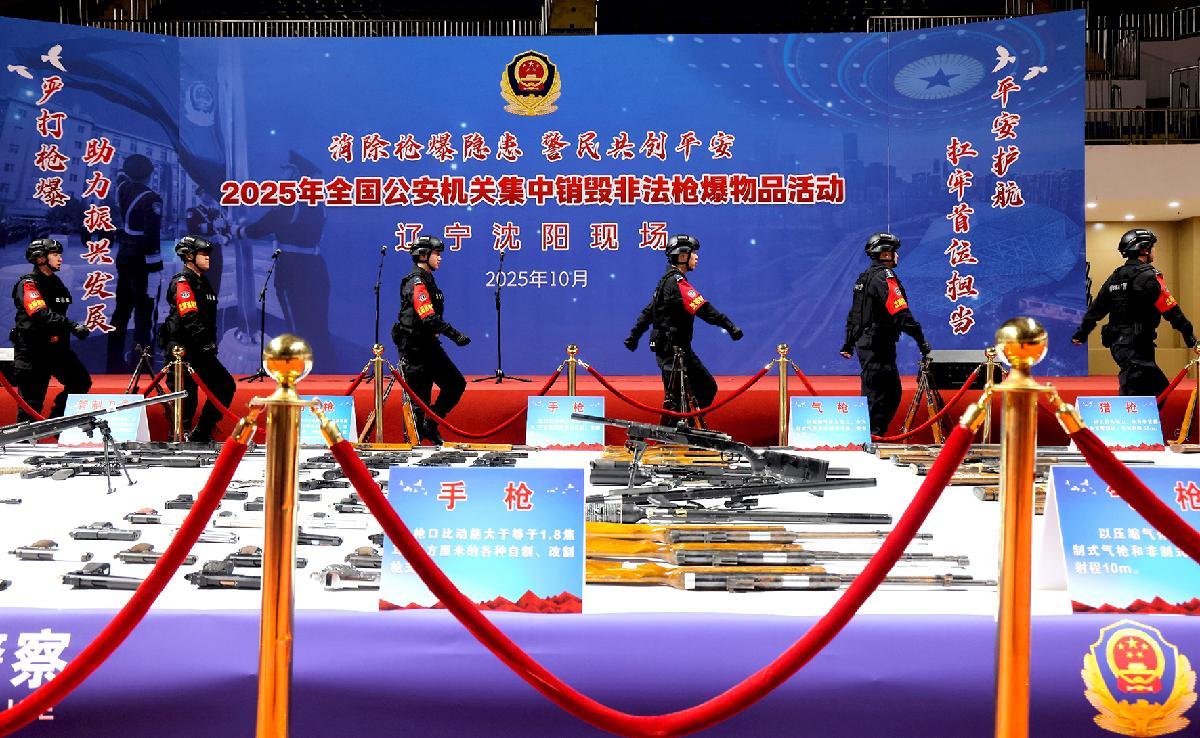 10月30日,辽宁省公安厅统一统筹,组织全省各地公安机关同步开展行动,集中销毁非法枪支、管制刀具及违爆物品。切实清除安全隐患,维护社会治安稳定,筑牢公共安全防线。