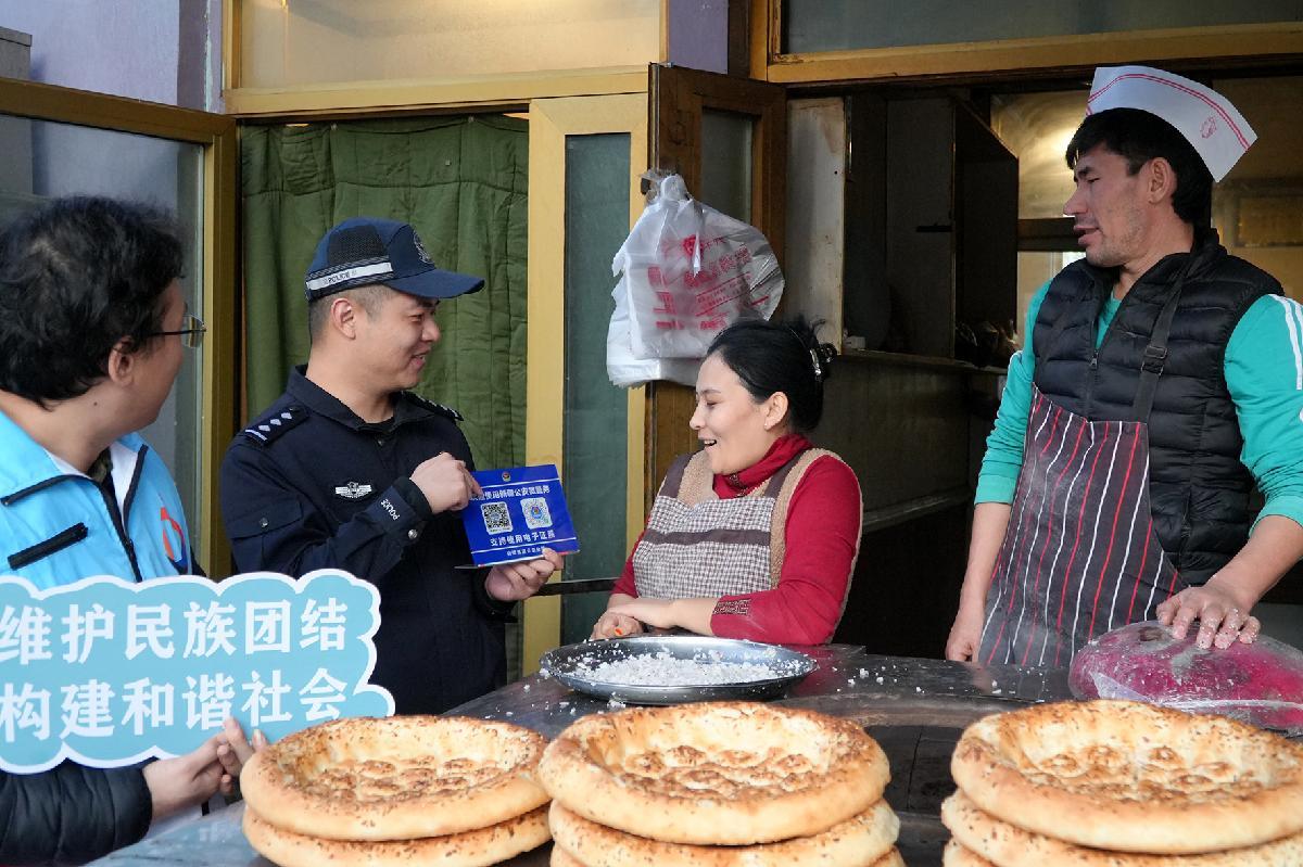 11月9日,新疆维吾尔自治区克拉玛依市公安局白碱滩区分局中兴路街道派出所北盛社区警务室民警联合社区工作人员深入辖区开展普法宣传,指导居民关注使用“新疆公安微警务”,筑牢社区安全防线。