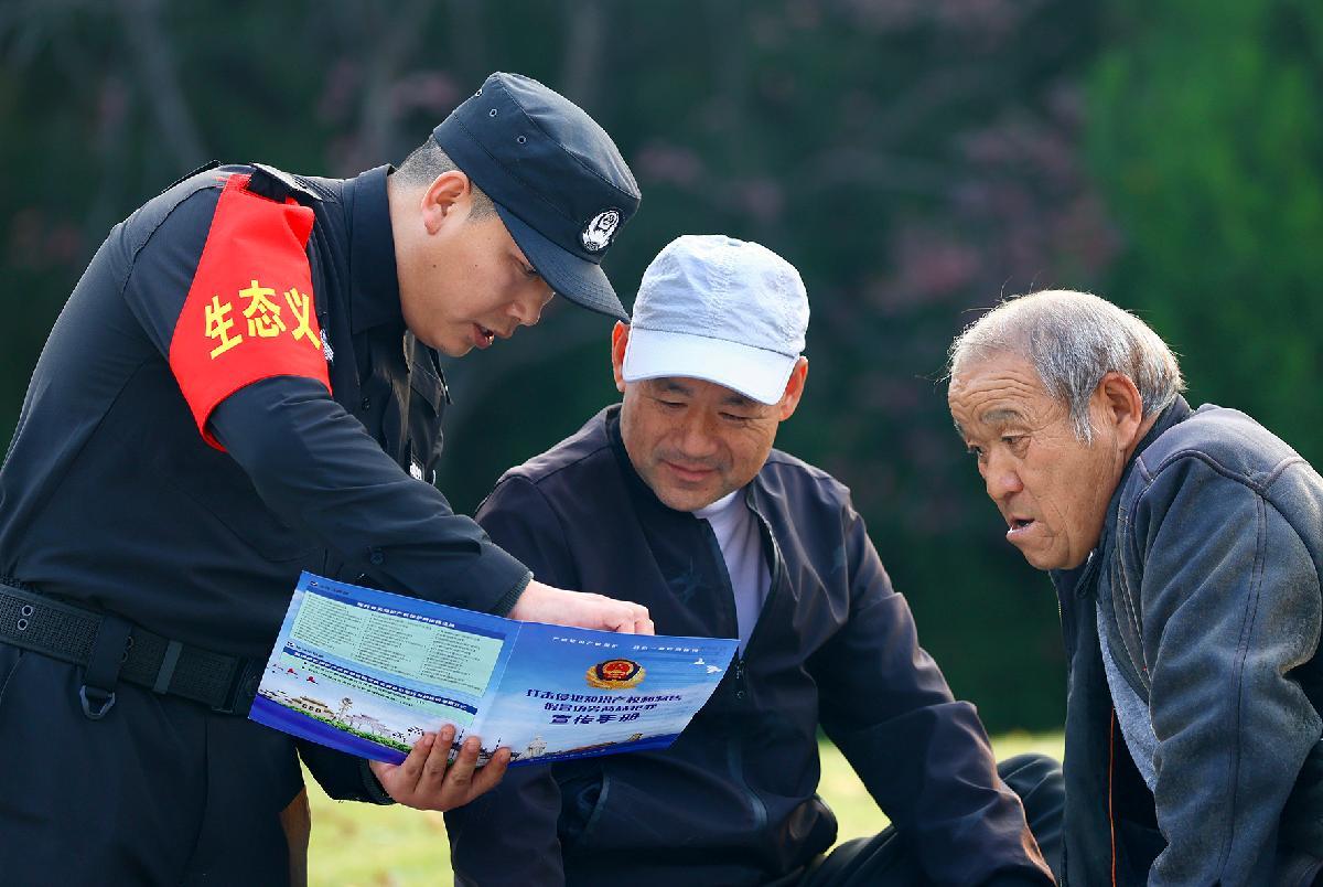 11月13日,安徽省亳州市公安局环食药支队聘任的“生态义警”向群众开展食药环知领域知识宣传。