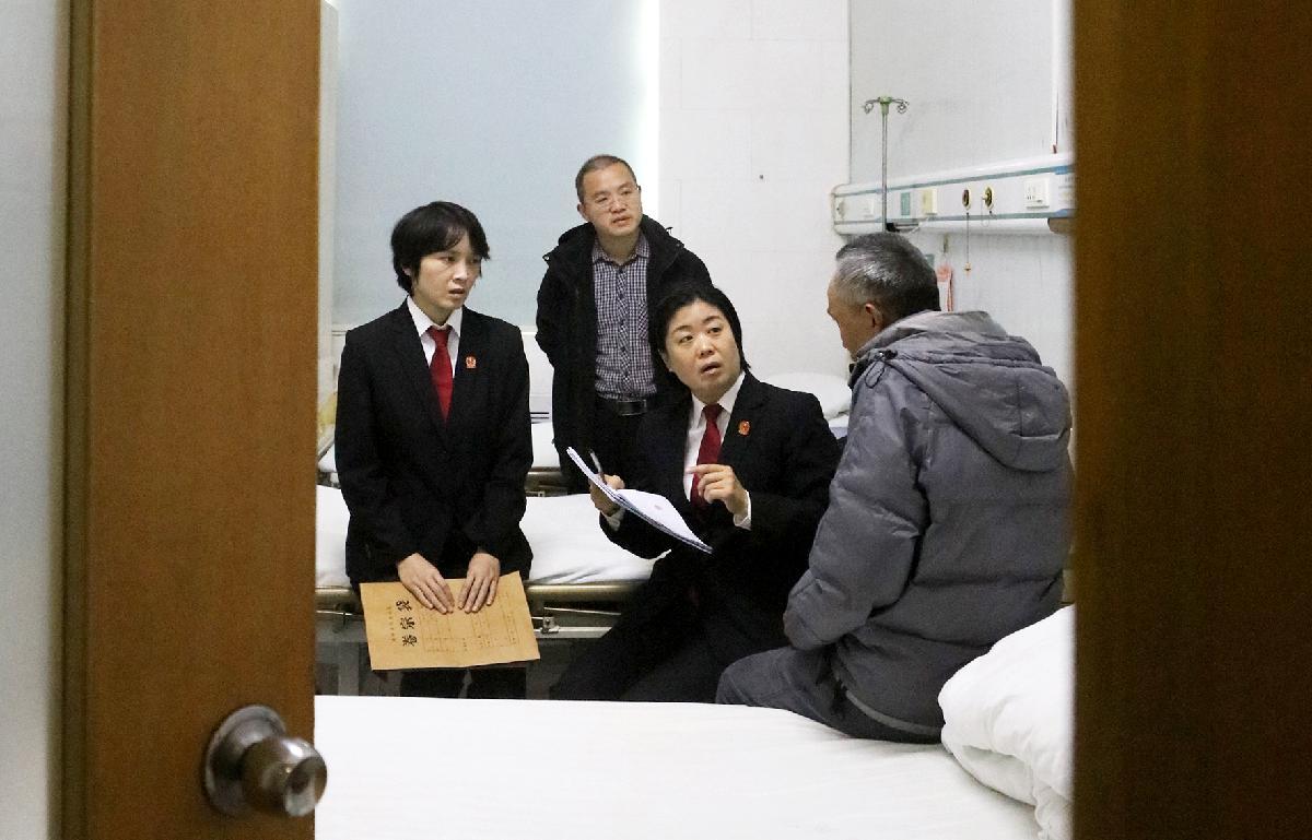 11月11日,河南省安阳县人民法院组织干警来到医院病房,对一起机动车交通事故责任纠纷案进行巡回办案,方便当事人参与诉讼。