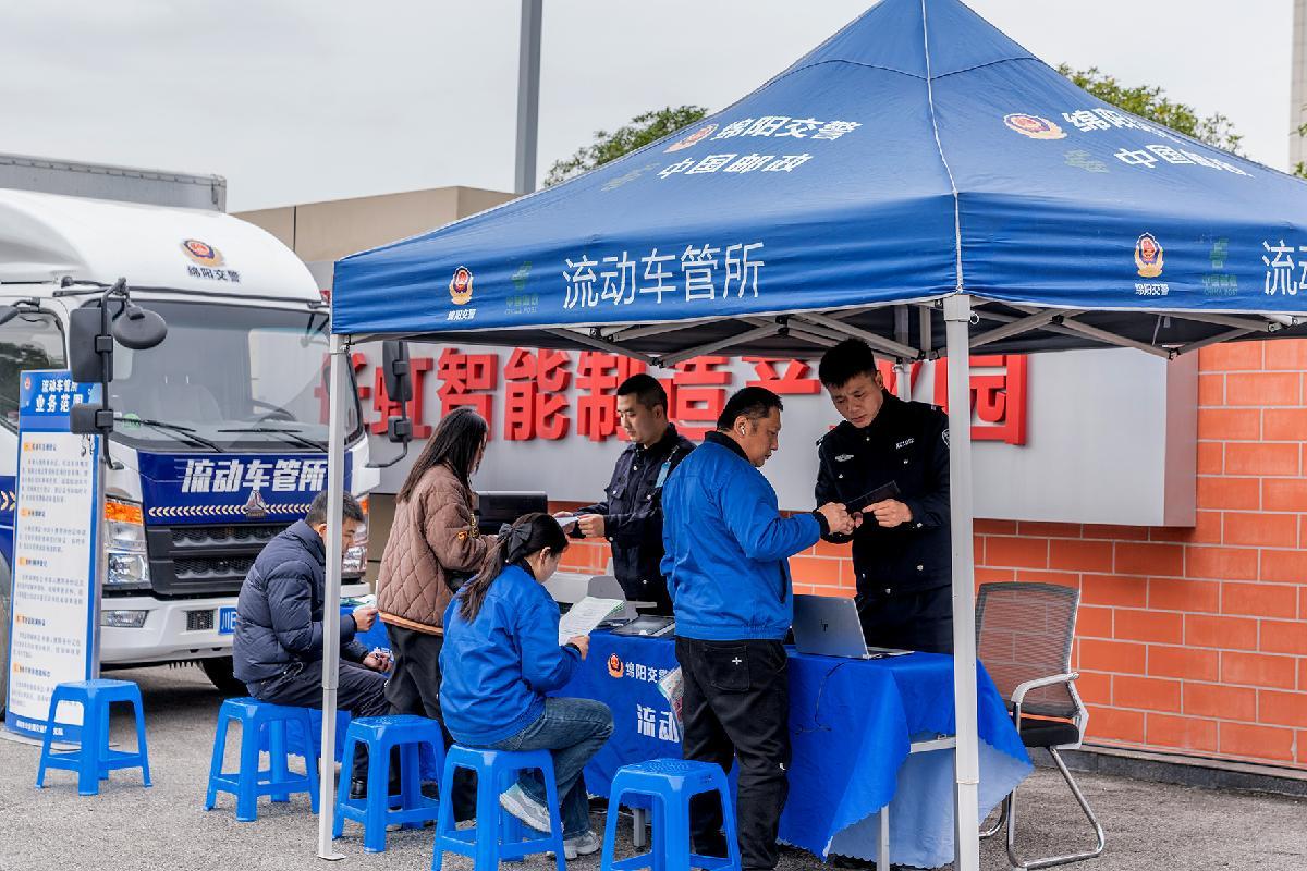 11月18日,四川省绵阳市公安局交通警察支队将“流动车管所”搬进绵阳市高新区产业园,为企业员工带来厂门口的车驾管服务。