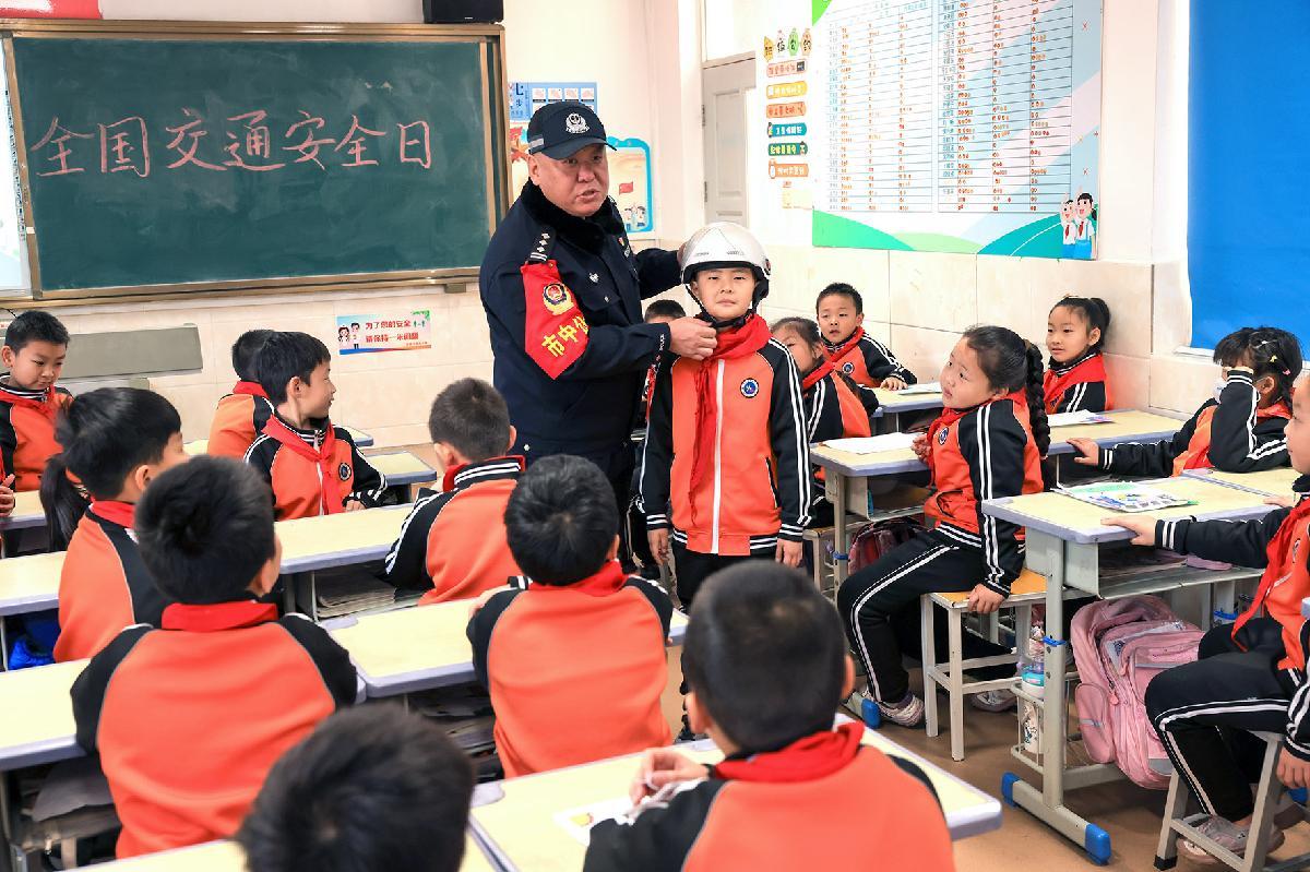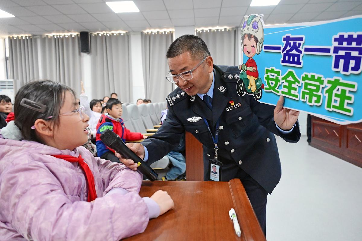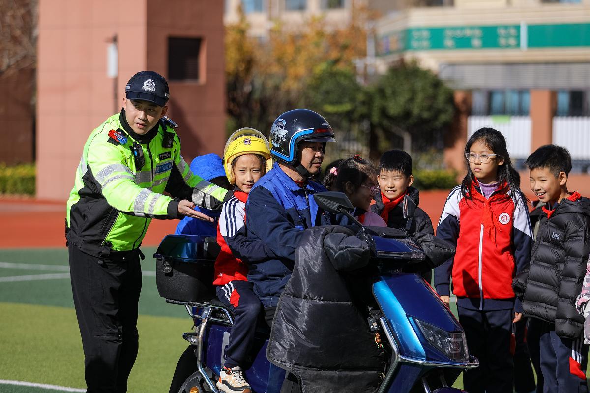 12月2日,山东省济南市公安局市中分局六里山派出所民警来到济南市玉函小学,开展“全国交通安全日”主题宣传。