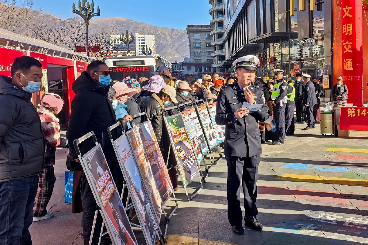 12月2日,西藏自治区山南市公安局交通管理支队民警走进辖区广场开展“全国交通安全日”主题宣传。