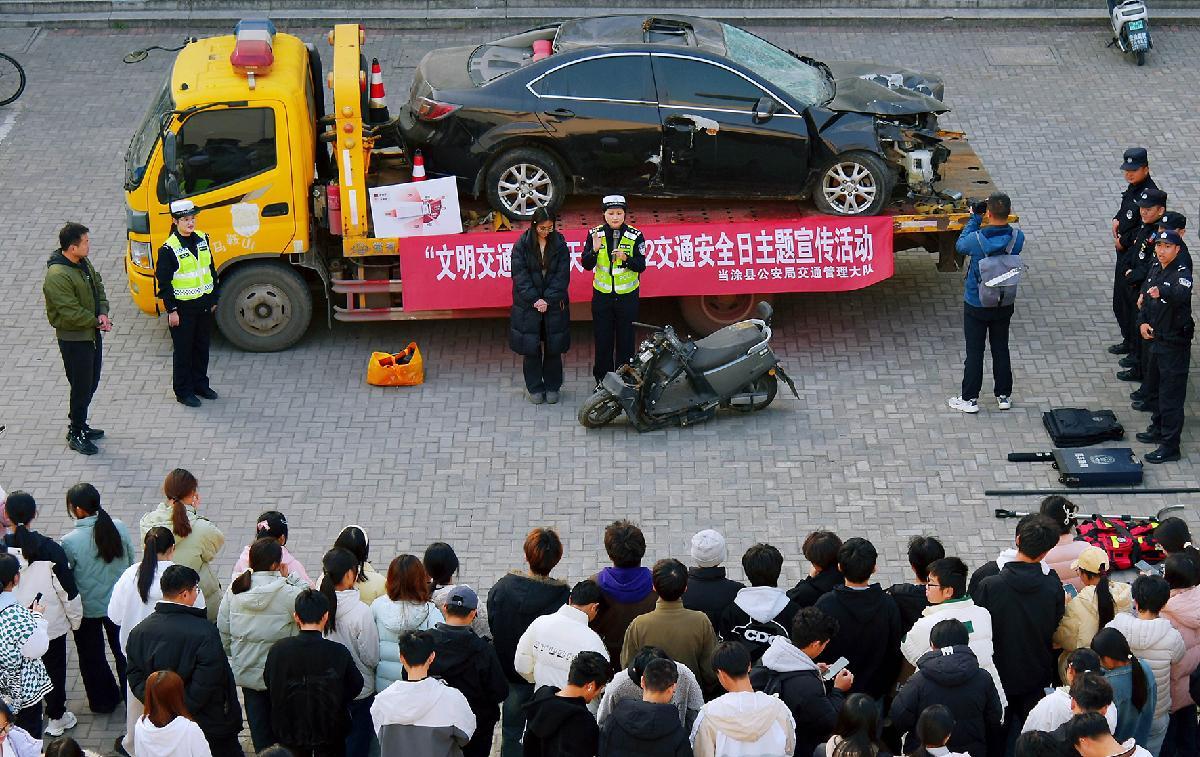 12月1日,安徽省当涂县公安局交管大队民警走进马鞍山学院开展“全国交通安全日”主题宣传。