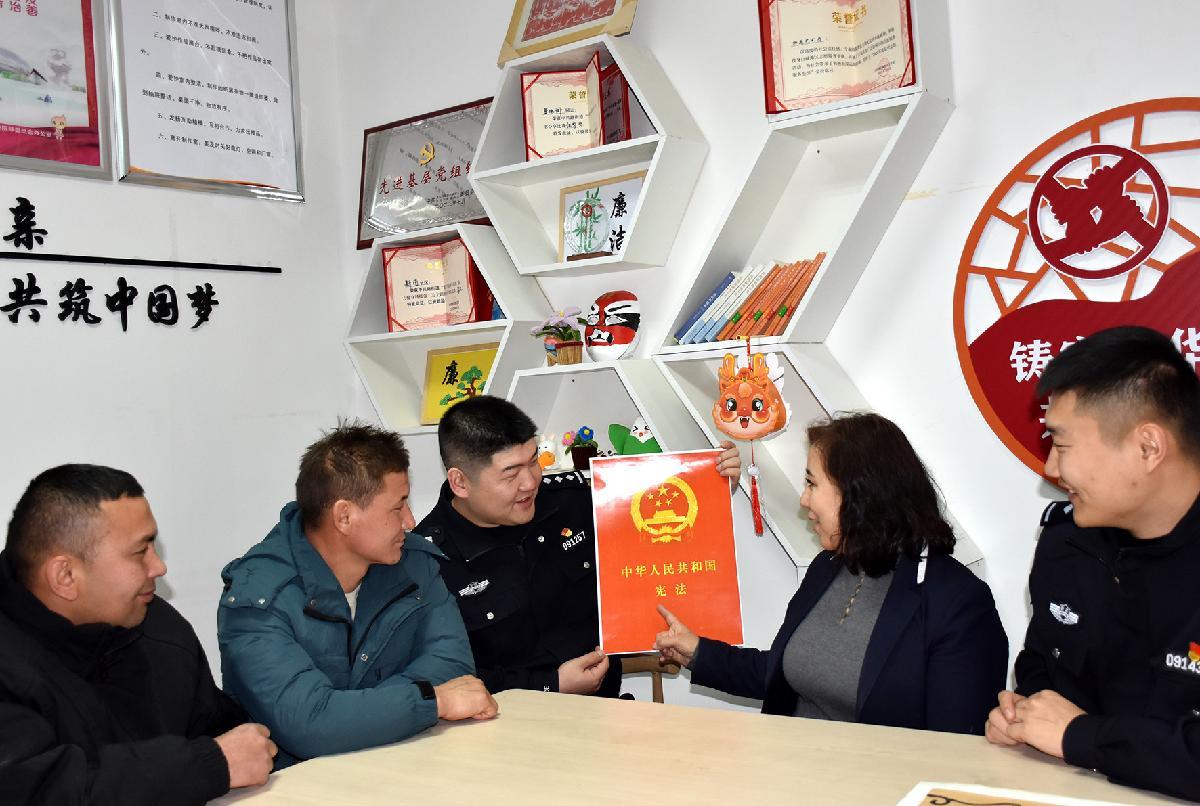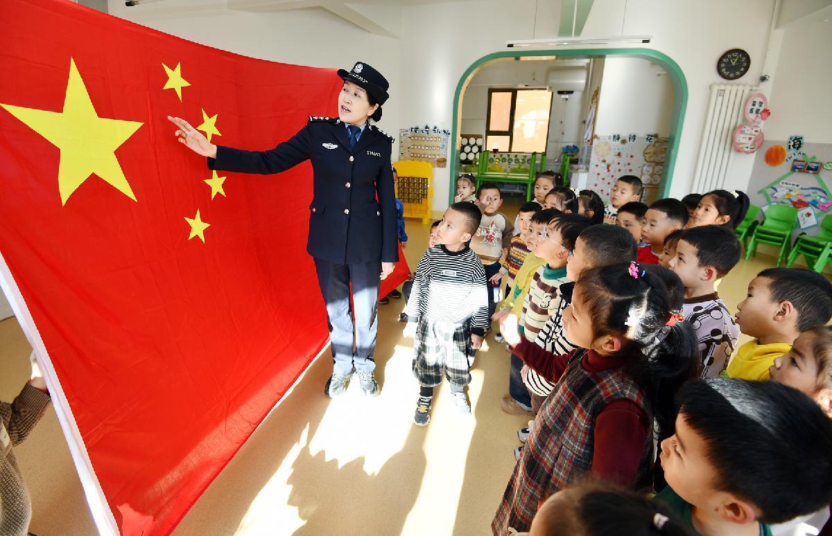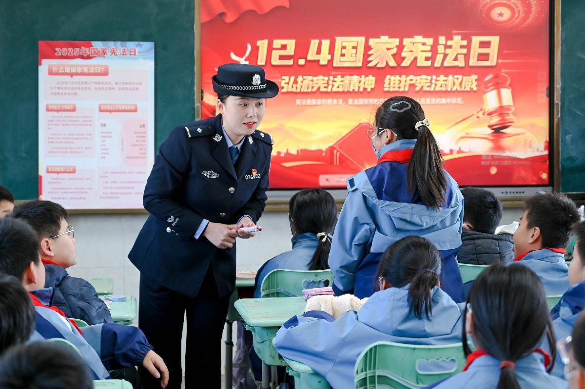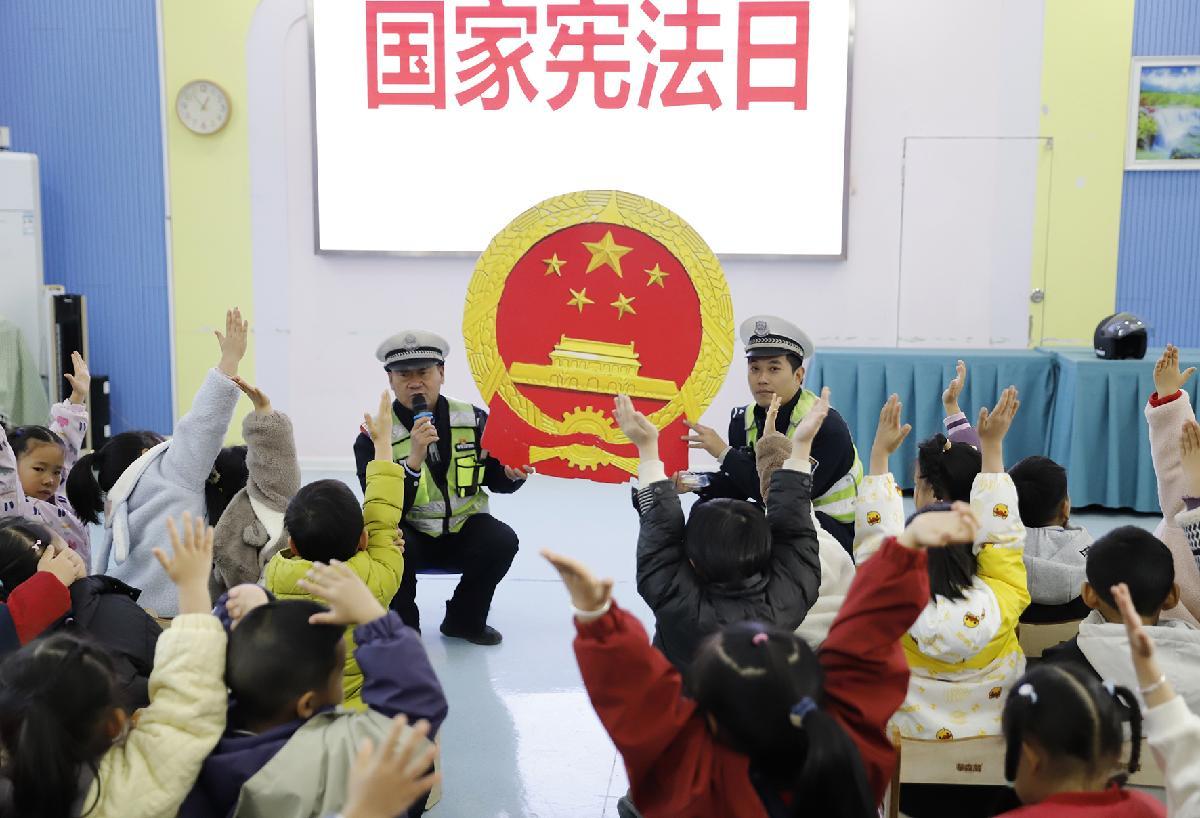 12月3日,甘肃省临泽县公安局城关派出所民警辅警走进临泽县第二幼儿园,开展“国家宪法日”主题宣传。