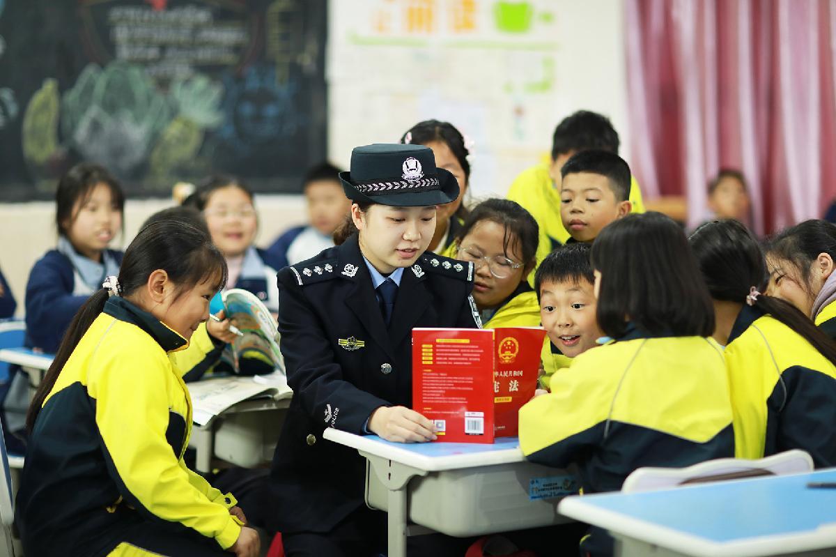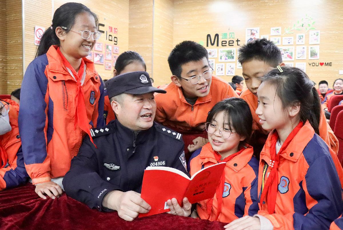 12月2日,江苏泰州出入境边防检查站民警走进泰州市凤凰小学,开展“知宪明法 与宪‘童’行”主题宣传。