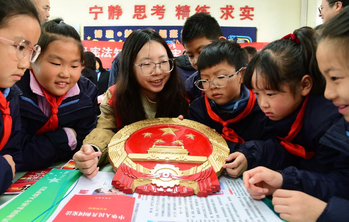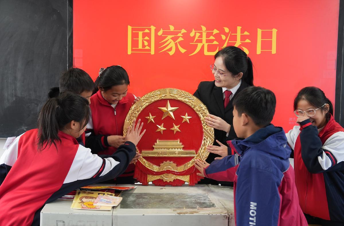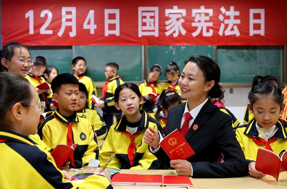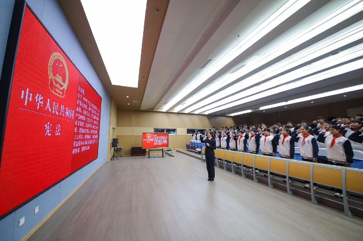 12月3日,安徽省六安市裕安区人民法院联合六安市城北小学开展“弘扬宪法精神 争做守法少年”主题宣传。
