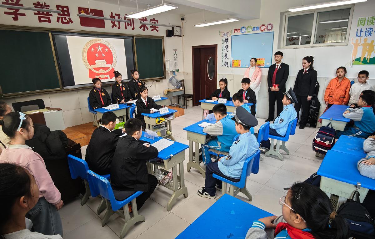 12月1日,吉林省四平市铁西区人民法院法官走进阳光实验小学,通过模拟法庭的形式开展宪法宣传。