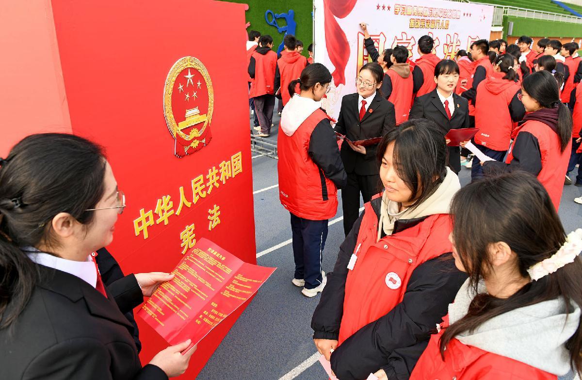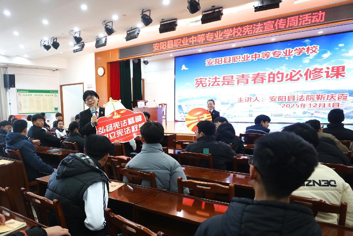 12月3日,河南省安阳县人民法院组织干警走进安阳县职业中等专业学校,开展“宪法是青春的必修课”主题宣传。