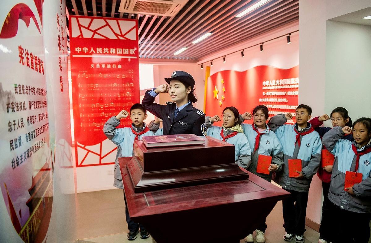 12月3日,安徽省马鞍山市雨山区司法局司法干警走进雨山实验学校宪法馆,开展“‘宪’护未来 ‘法’润童心”主题宣传。