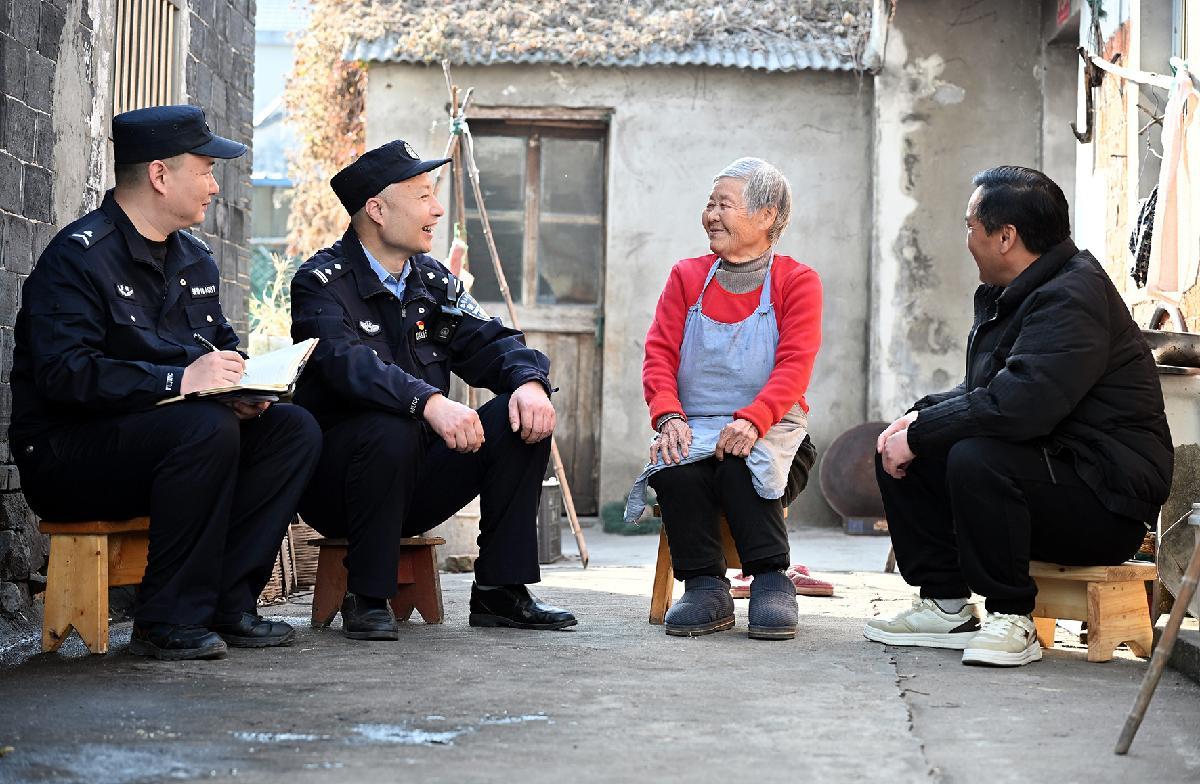 12月16日,安徽省马鞍山市当涂县公安局湖阳派出所民警辅警走访辖区群众,宣传冬季安全防范知识。