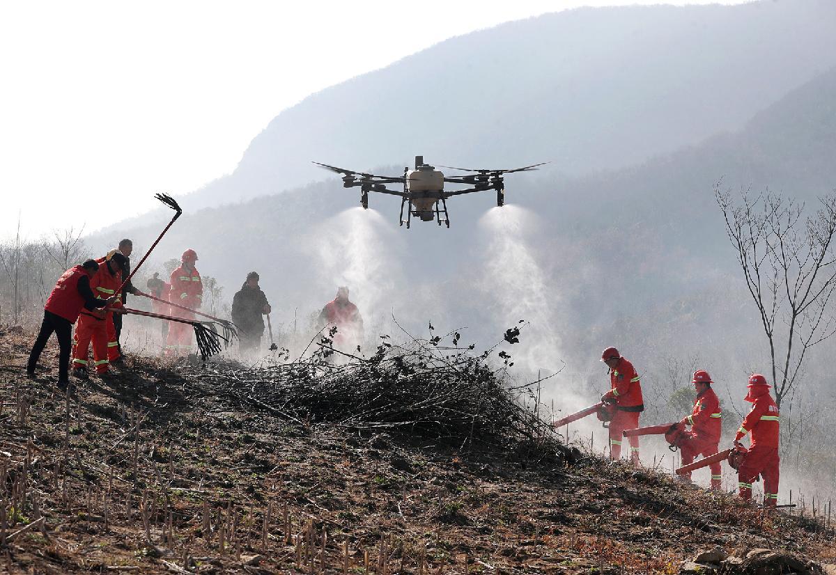 湖北省荆门市东宝区石桥驿镇以科技赋能生态防护,引入无人机集群巡护技术,融合卫星遥感监测与地面瞭望塔观测,构建起“空天地”一体化森林火情防控网络。