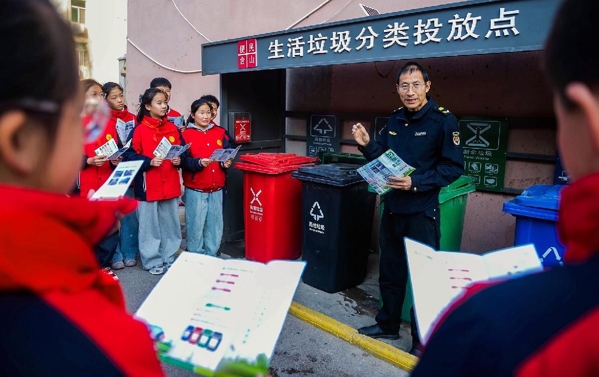1月9日,安徽省含山县城管局联合环峰小学开展垃圾分类进校园活动。
