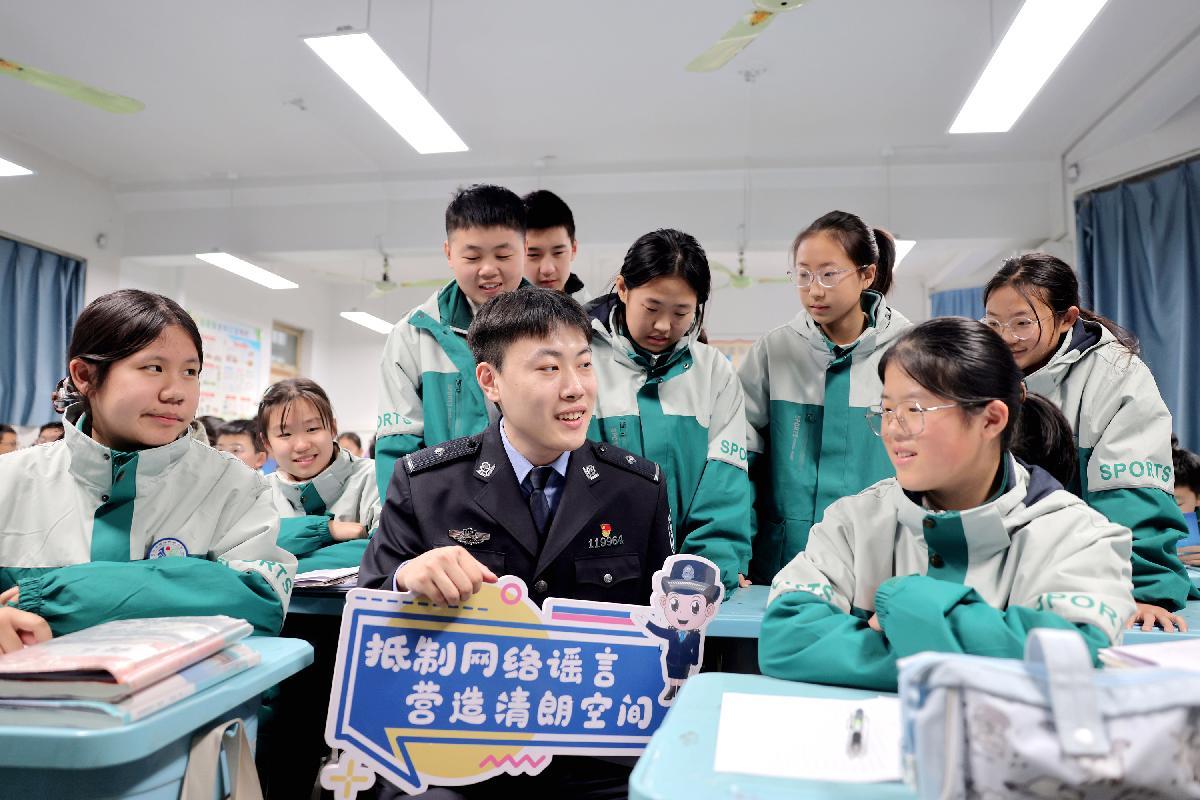 1月22日,山东省枣庄市公安局薛城分局网警大队民警紧扣“冬季守护”专项行动,在辖区中小学开展防范网络谣言宣讲活动。