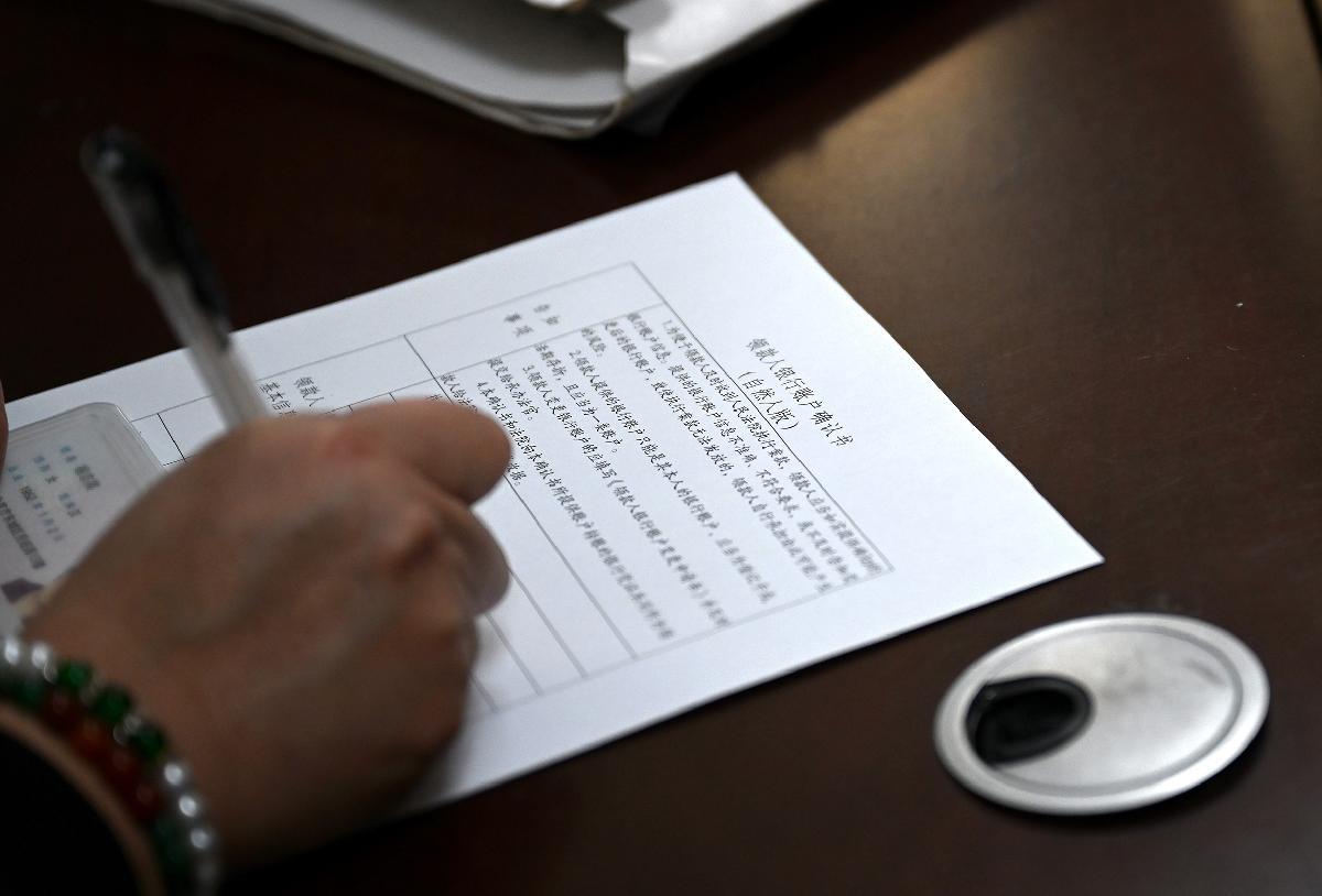 2025年12月23日,北京市第二中级人民法院退休法官郭文彤作为“银枫调解委员会”的调解员,正在就一起物业服务纠纷核实情况。