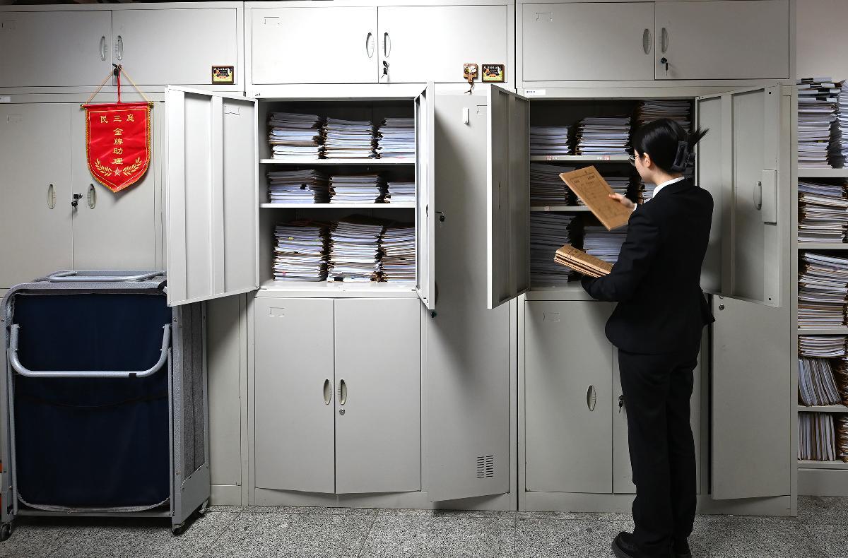 2025年12月31日下午5时,北京市朝阳区人民法院民三庭法官助理熊格将2025年审结最后一个案件的卷宗整理好、放入卷柜中。