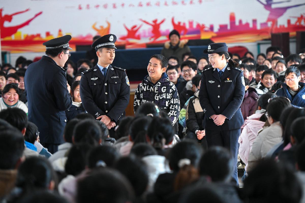 1月26日,安徽省马鞍山市和县公安局民警走进善厚中学,开展“拒绝校园欺凌”主题宣传,通过案例解析、现场互动等方式,提升学生法治意识和自我保护意识。