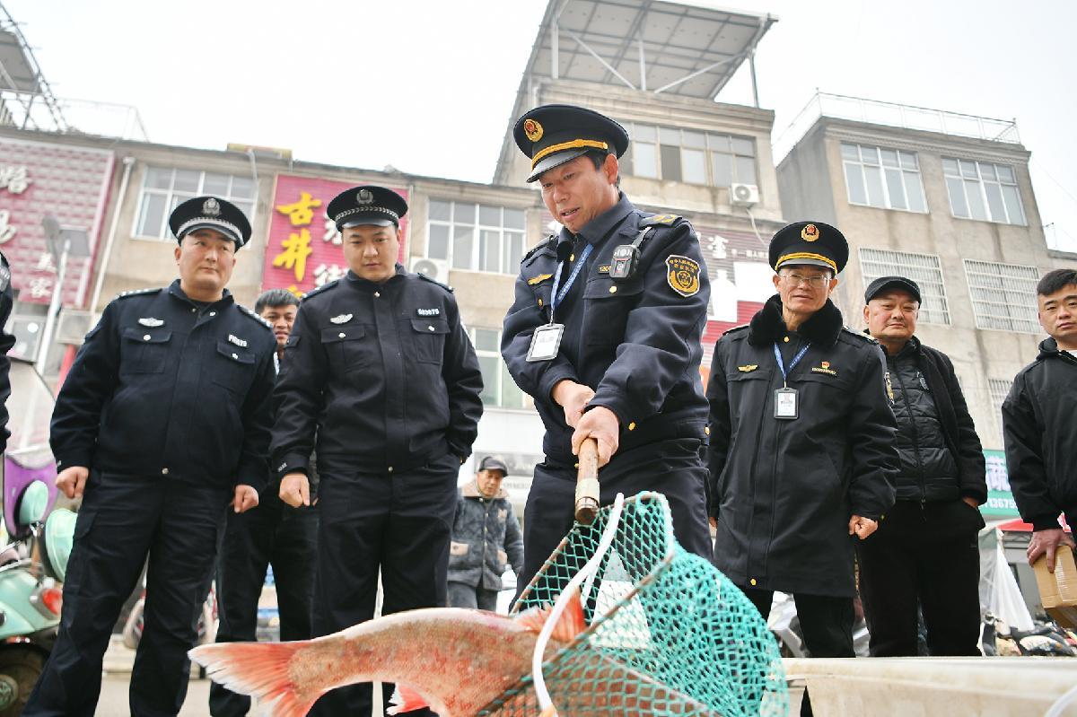 春节临近,安徽省阜南县农业农村局联合公安局、市场监督管理局等部门对辖区农贸市场、超市和餐饮企业,开展原料采购溯源、生产加工流程和淮河禁捕鱼类监督检查,守护群众节日“舌尖上的安全”。