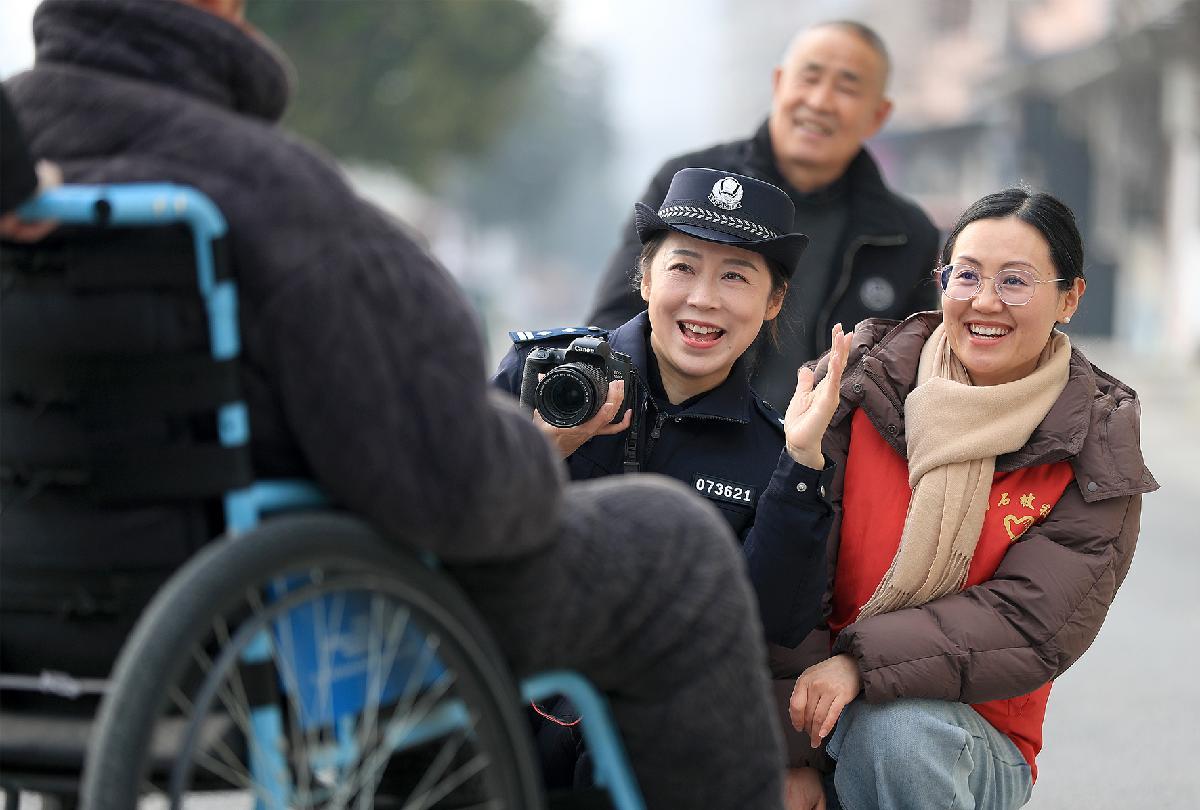 图为1月27日,掇刀石派出所户籍民警在白石坡社区,上门为行动不便的居民采集身份证换证信息。
