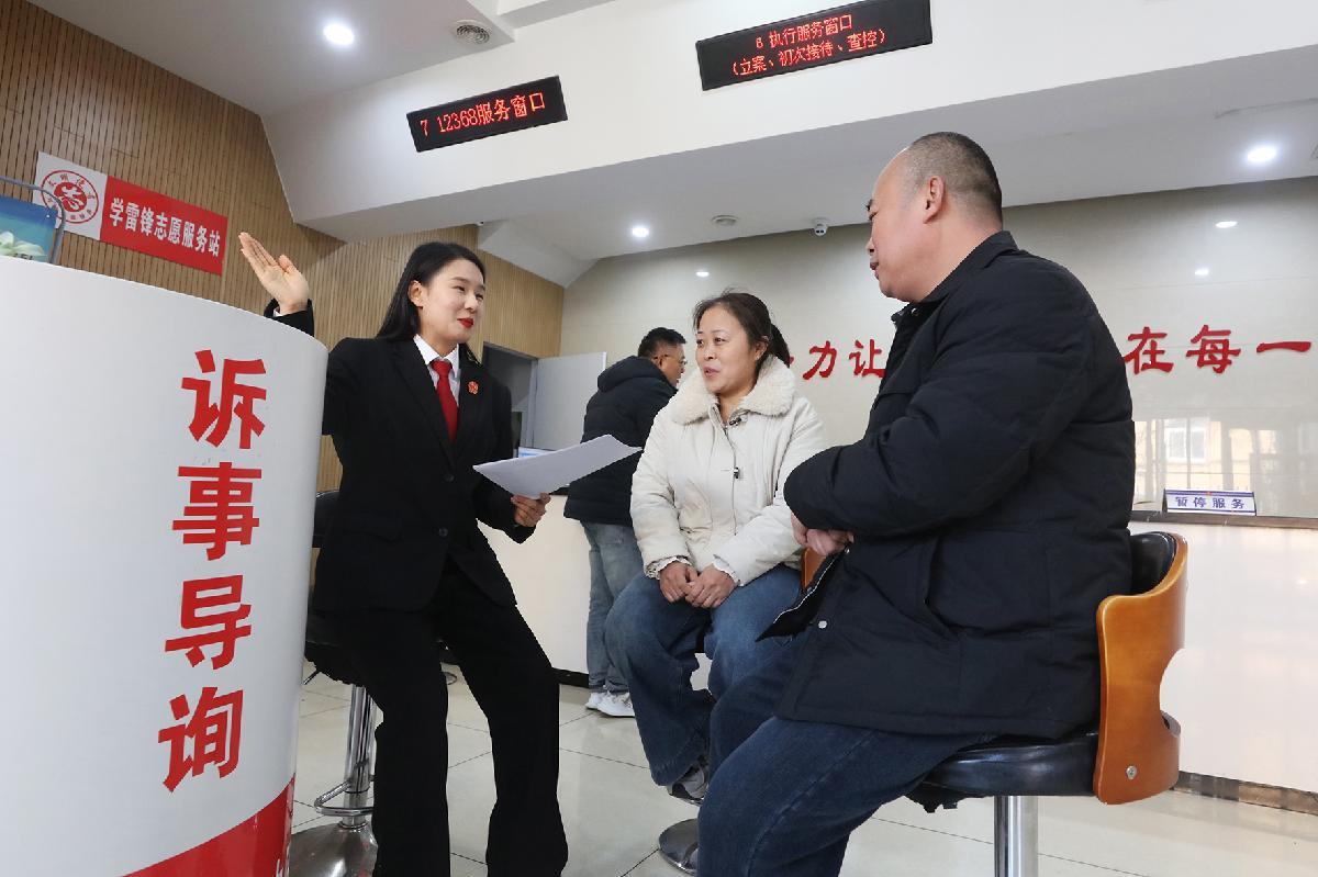 图为诉讼服务大厅工作人员为前来办事的群众提供导诉服务。