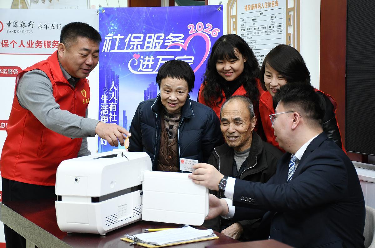 2月24日,河北省邯郸市永年区人力资源和社会保障局开展“上门认证服务暖民心”主题活动,组织流动服务队走进杏霖养老院,为老人们提供养老保险待遇资格认证、社保卡办理等上门服务。