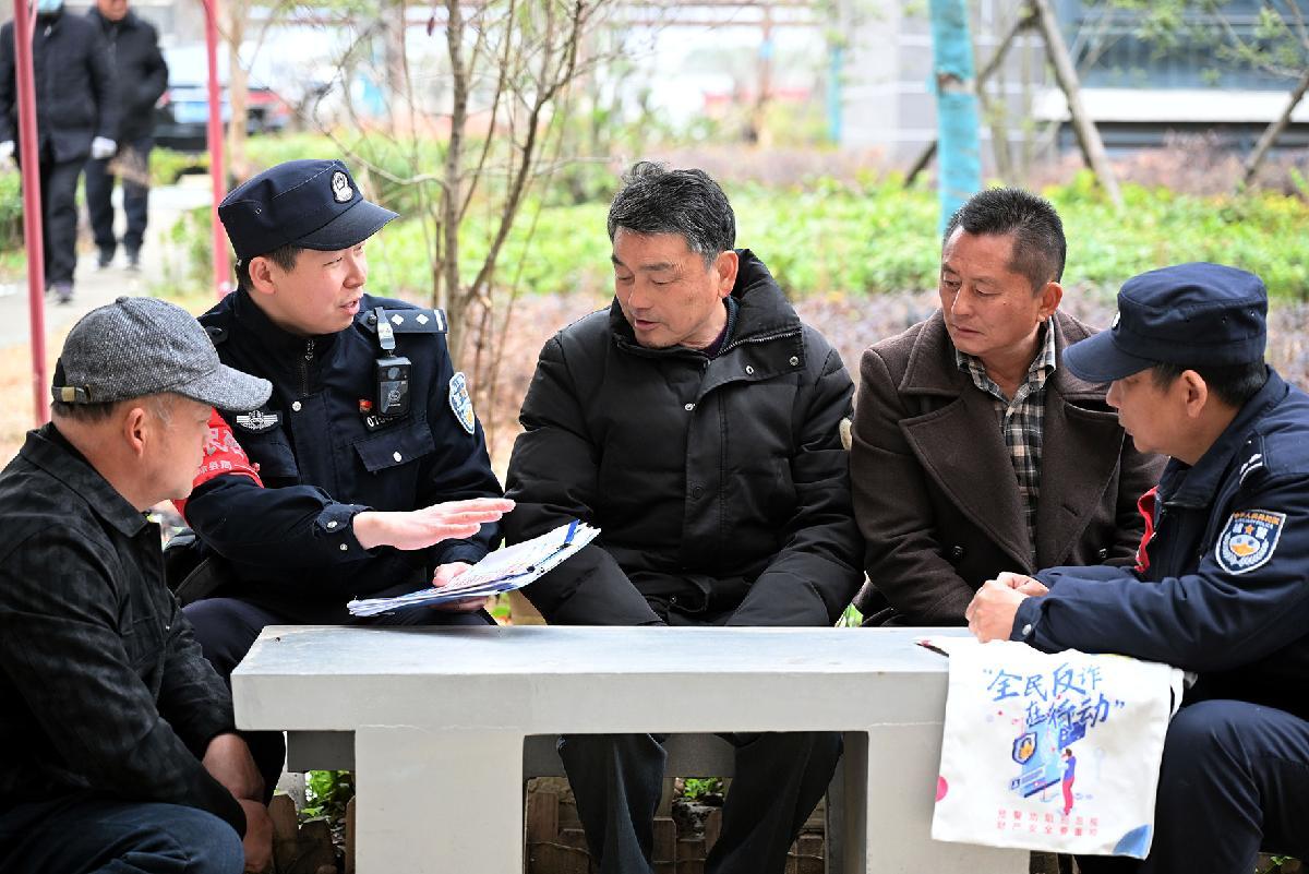 图为民辅警在洞阳村为群众宣讲反诈知识。