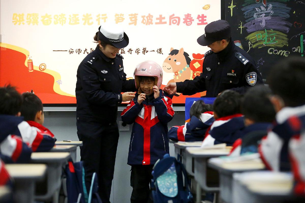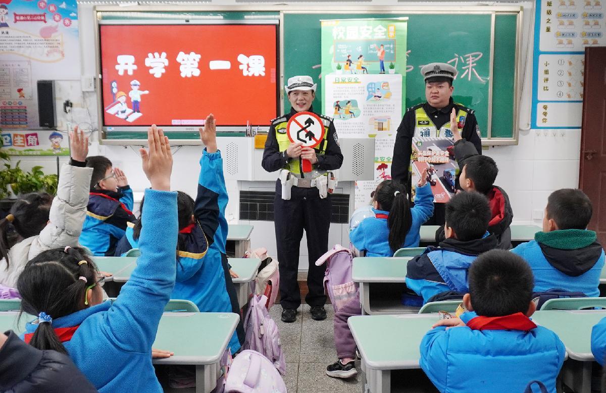 3月2日,安徽省芜湖市公安局镜湖交管大队联合张家山派出所组织开展“迎接新学期,送法进校园”主题开学第一课活动。