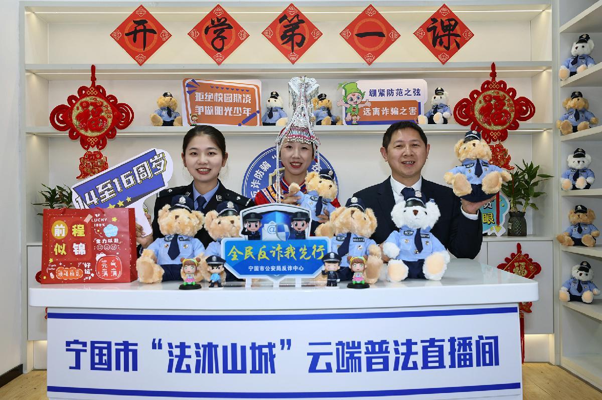 2月28日,安徽省宁国市公安局、司法局、教体局联合开展网络直播“开学第一课”。反诈中心民警、畲族乡法律“明白人”及公益律师围绕反诈、防欺凌等内容进行宣传,进一步提升校园学生们的安全防范意识。