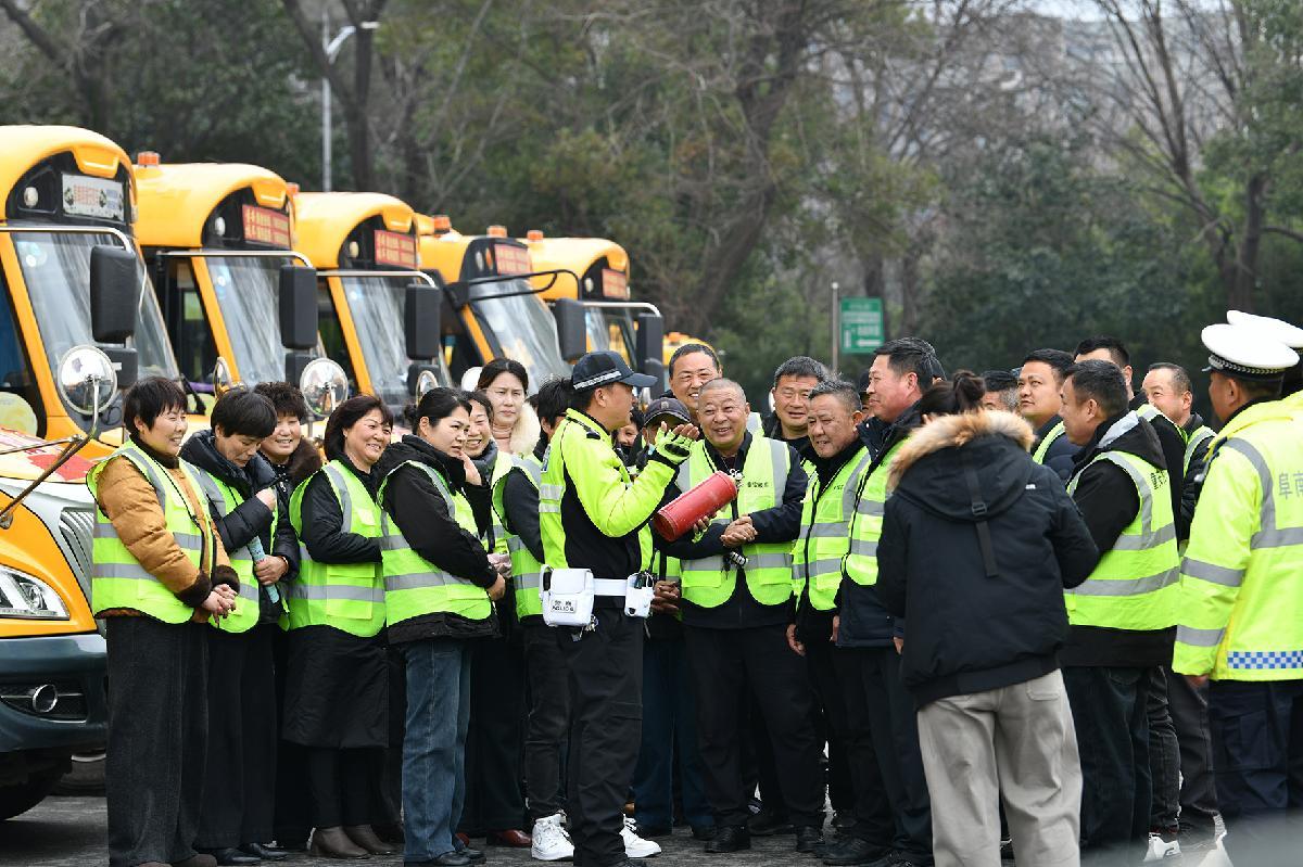 2月28日,安徽省阜南县公安局交管大队组织民警走进校车公司开展校车安全检查,并宣讲交通安全注意事项。