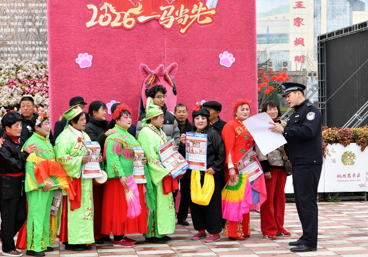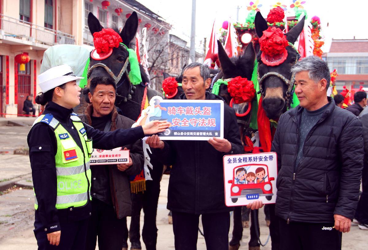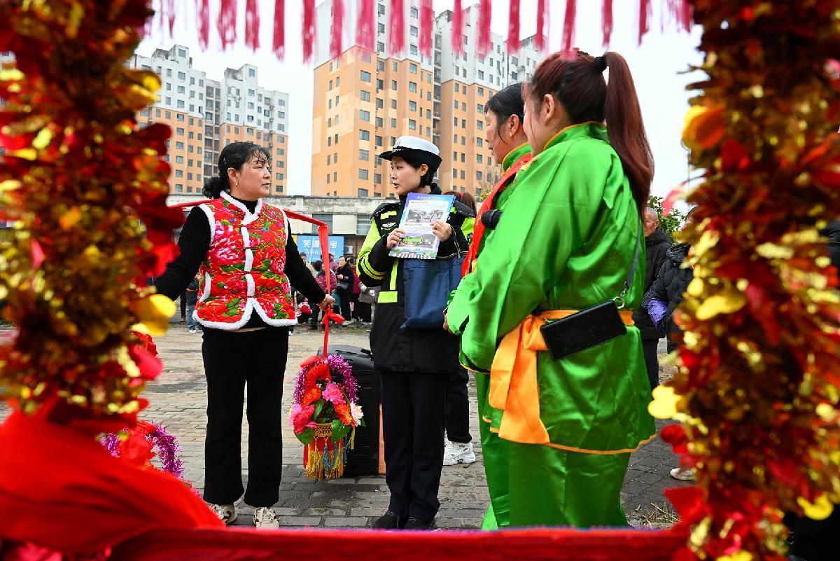3月2日,山西省稷山县公安局交通管理大队组织民辅警走进社火活动现场,扎实开展“美丽乡村行”交通安全宣传。