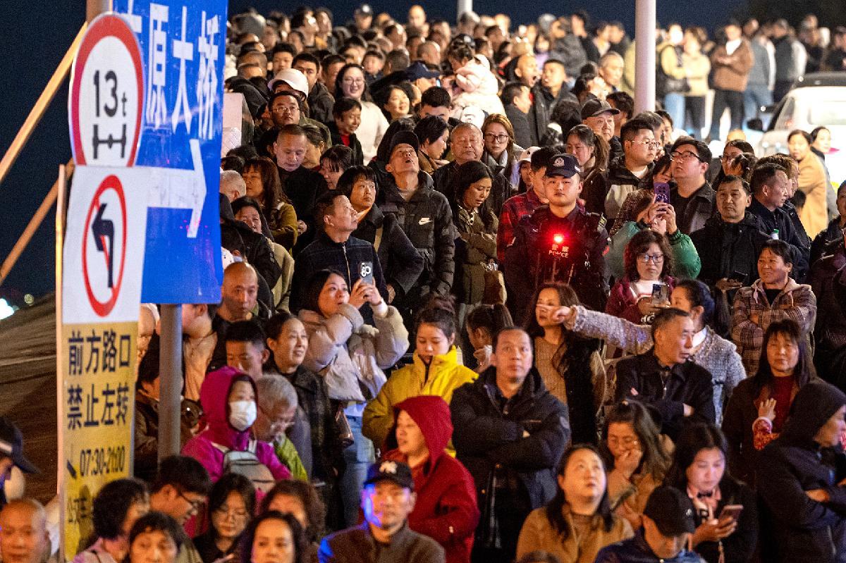 3月1日,四川省绵阳市公安局民警在元宵节活动现场定点值守,疏导人流、维护秩序。