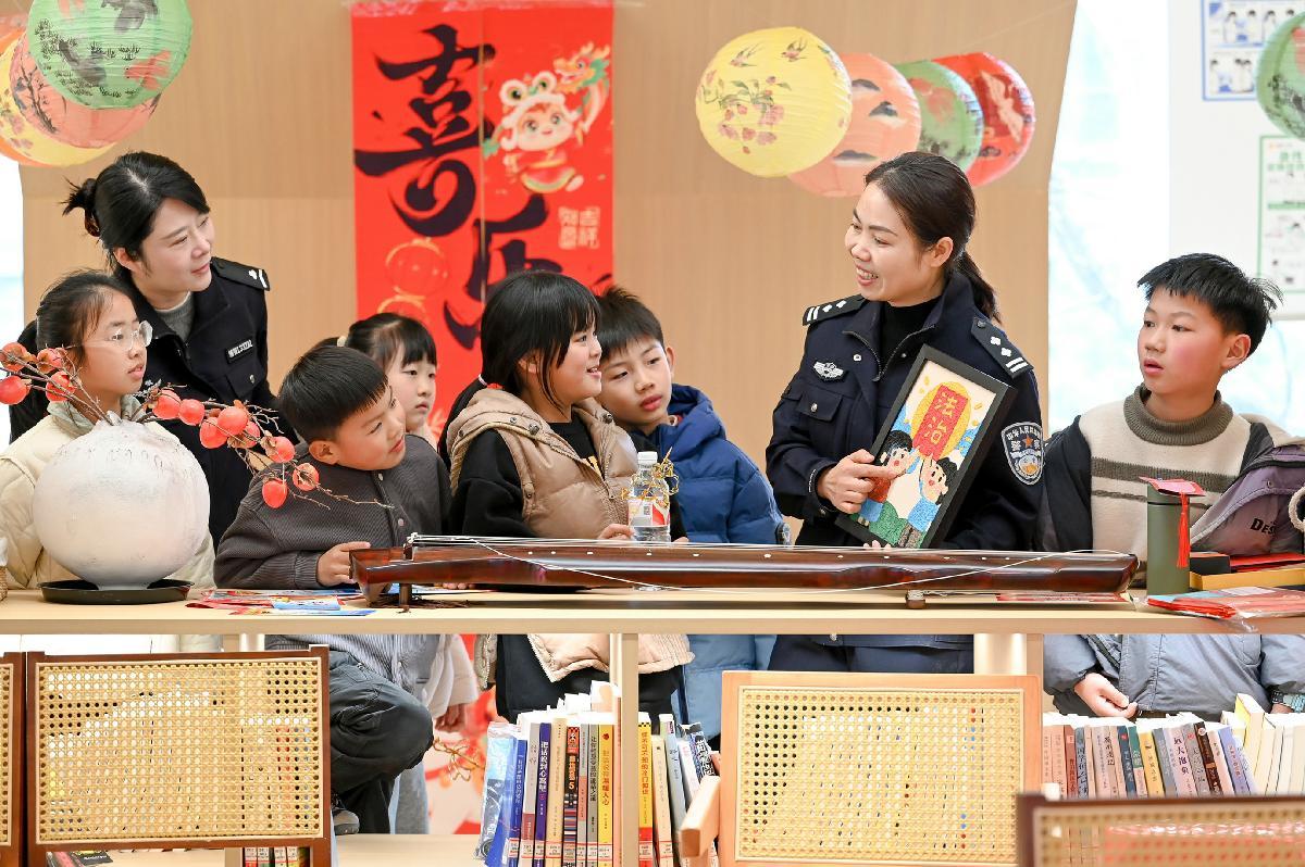 3月3日,安徽省马鞍山市和县公安局民警为孩子们讲解元宵节的来历,同时宣传未成年人保护相关知识。