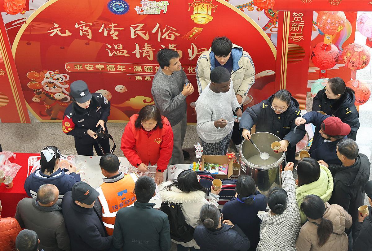 3月3日,元宵佳节。江苏省南通市崇川区幸福街道联合南通火车站、南通站派出所、南通职业大学开展“元宵传民俗 温情满归途”主题活动。