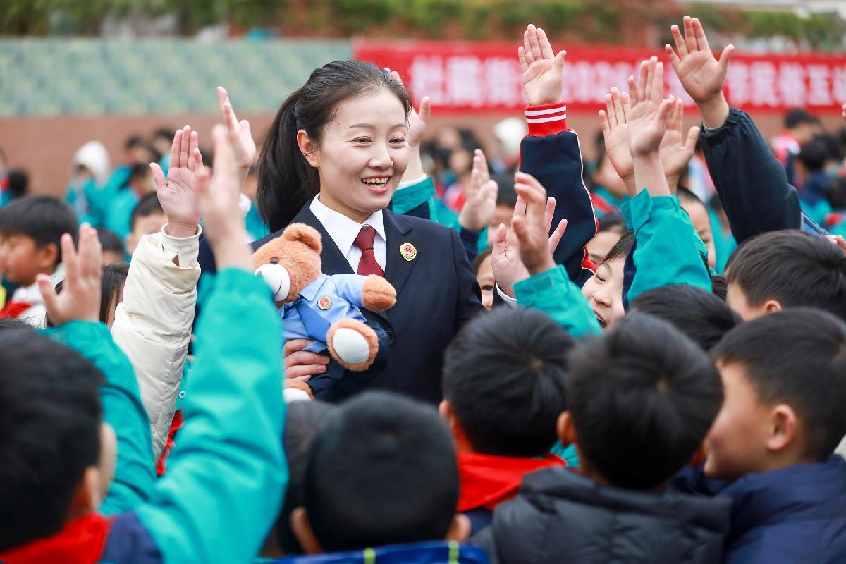 3月3日,贵州省黔西市人民检察院的干警来到杜鹃街道金阳学校,为学生们讲解未成年人保护法相关知识。