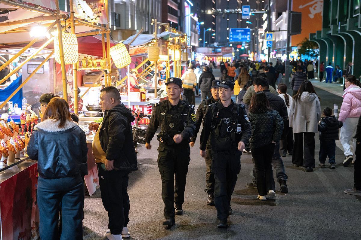 3月2日,浙江省台州市公安局黄岩分局巡特警大队民警在青年路步行街巡逻执勤,让市民度过一个喜庆祥和的元宵佳节。