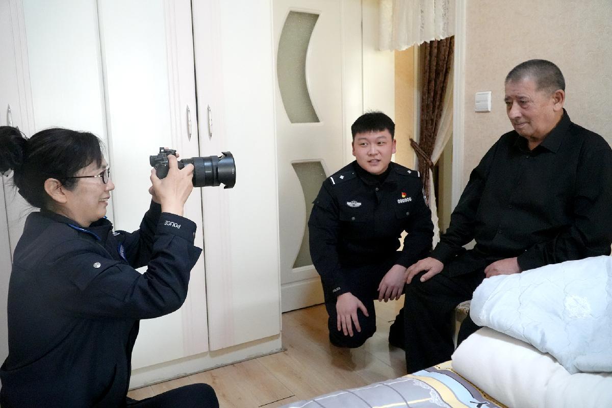 3月3日,新疆维吾尔自治区克拉玛依市公安局白碱滩区分局中兴路街道派出所民辅警上门为行动不便的老人办理身份证,将便民服务送到群众家门口。