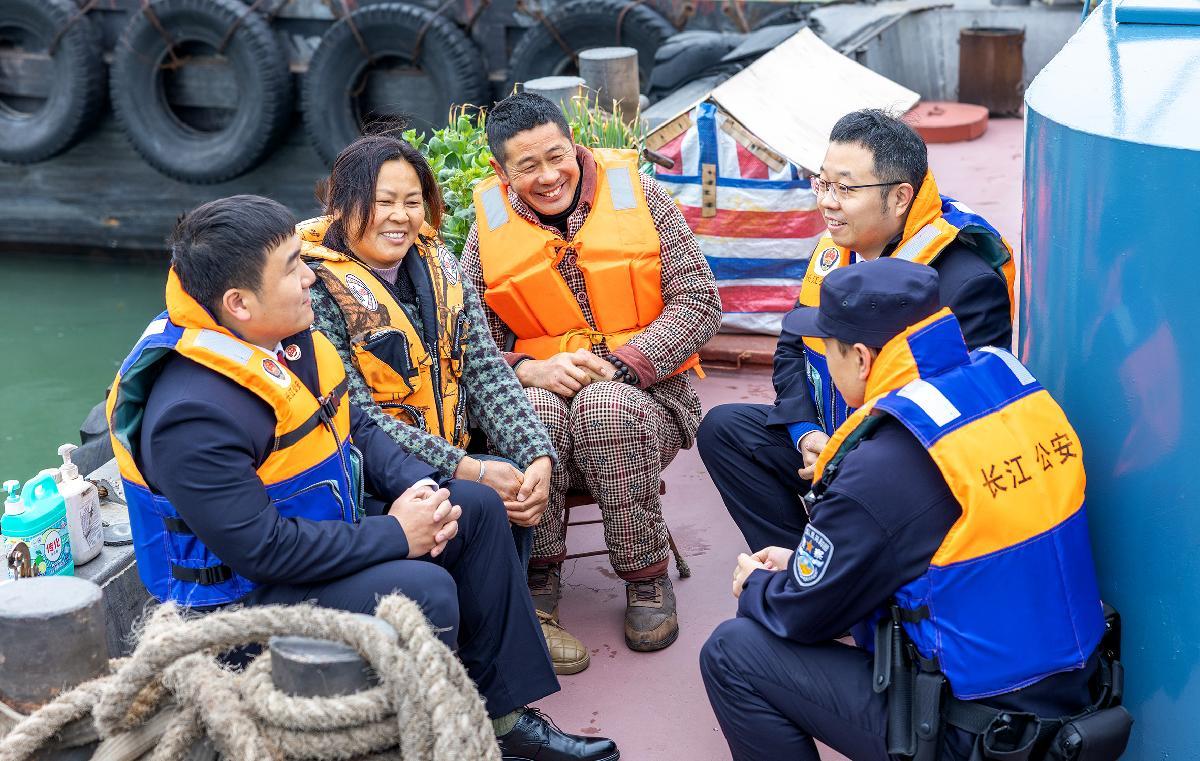 在《中华人民共和国长江保护法》实施五年之际,2月28日,长江航运公安局镇江分局镇江派出所联合江苏省镇江市京口区人民检察院在长江江苏镇江段经开区水域开展“送法上船头”主题宣传。