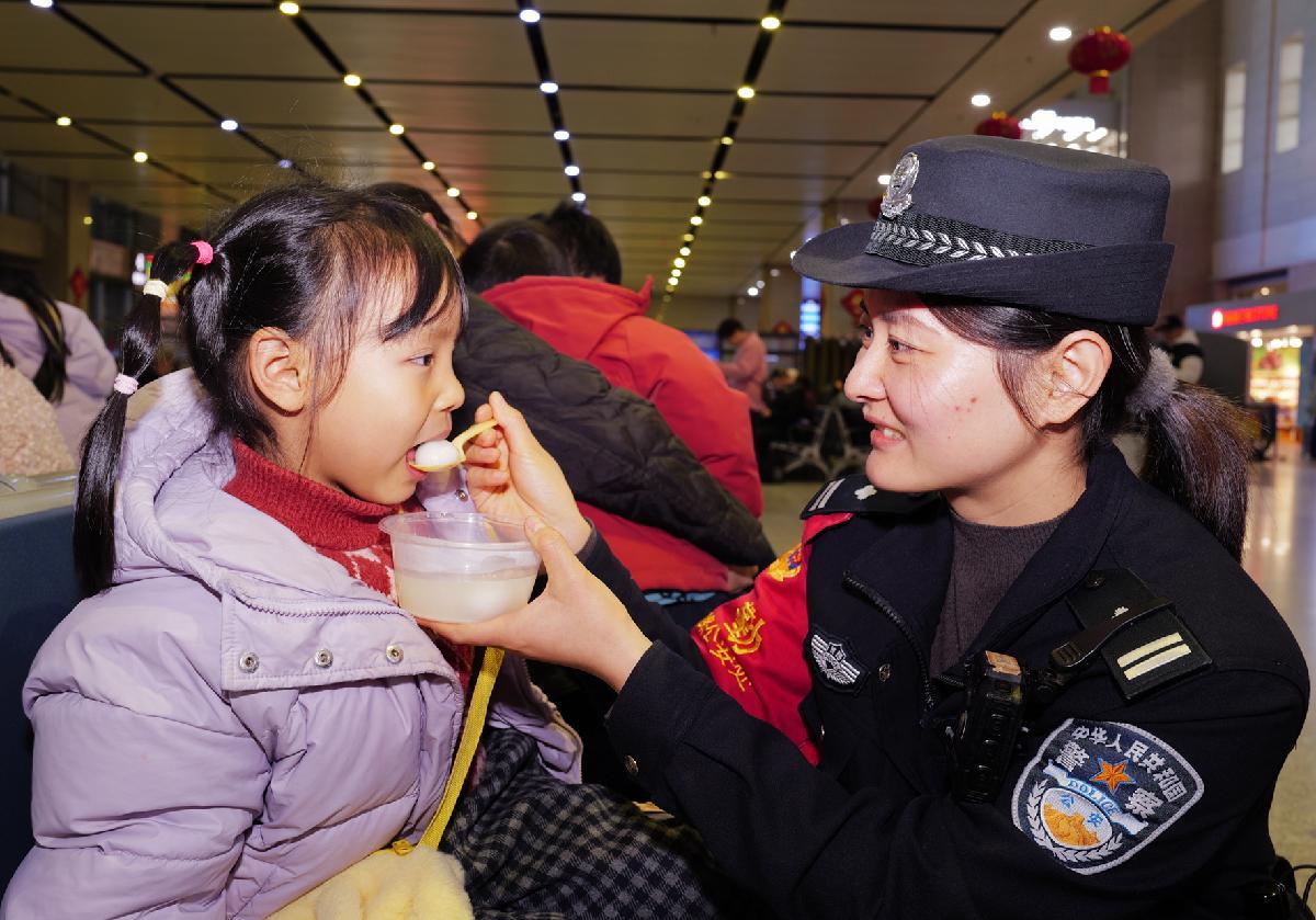 3月2日,湖北宜昌东站迎来了春运返程客流高峰。襄阳铁路公安处宜昌东站派出所组织民警做好服务保障工作的同时,将一碗碗热气腾腾的汤圆送到旅客手中,共同迎接元宵佳节的到来。