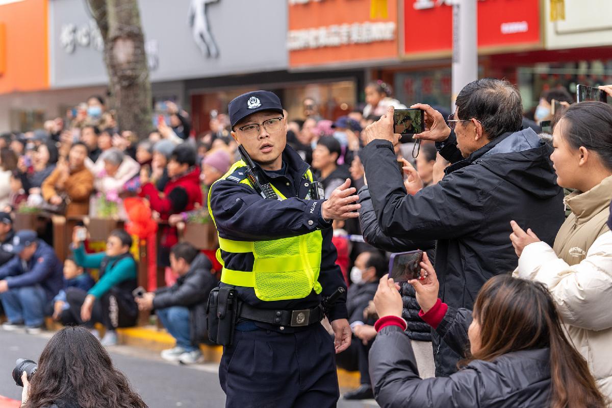 3月2日,陕西省富平县公安局组织民辅警全力做好元宵节社火展演交通疏导、秩序维护、便民服务等工作。