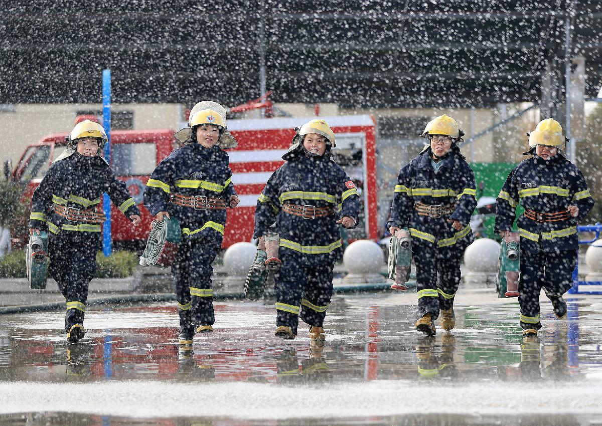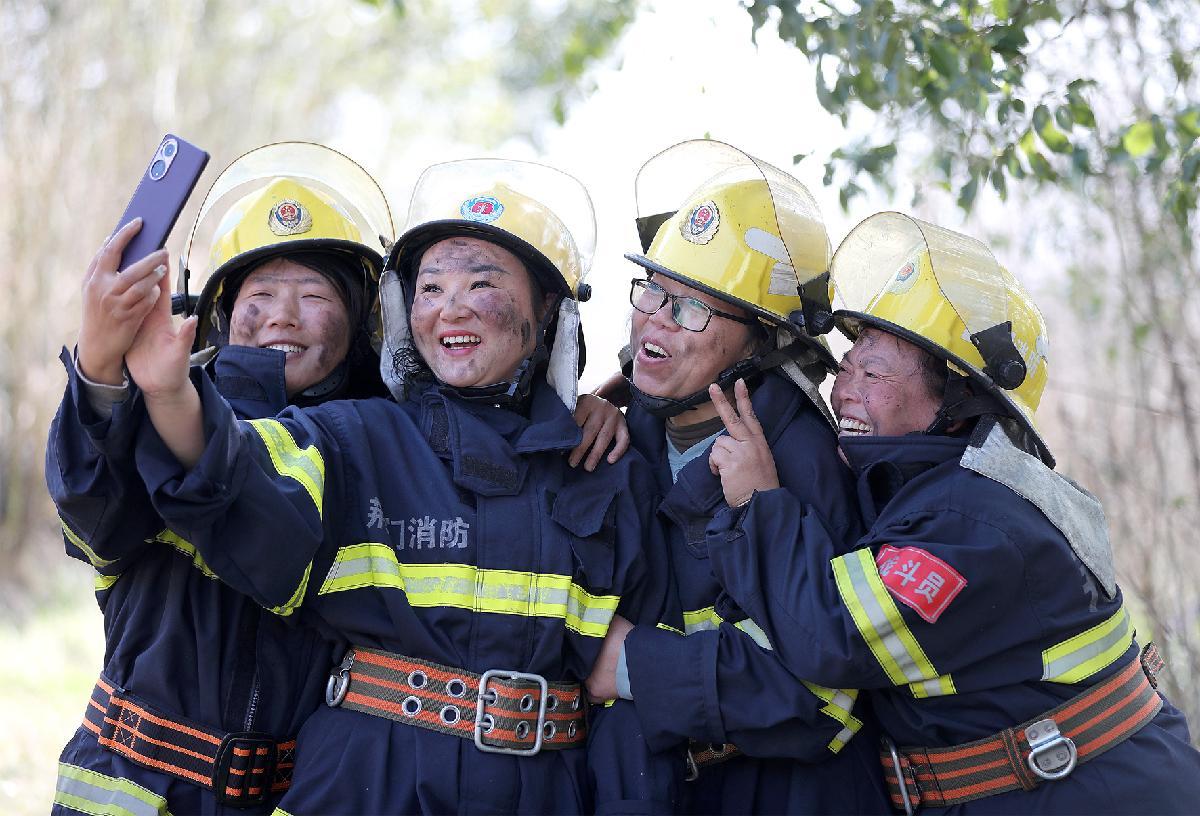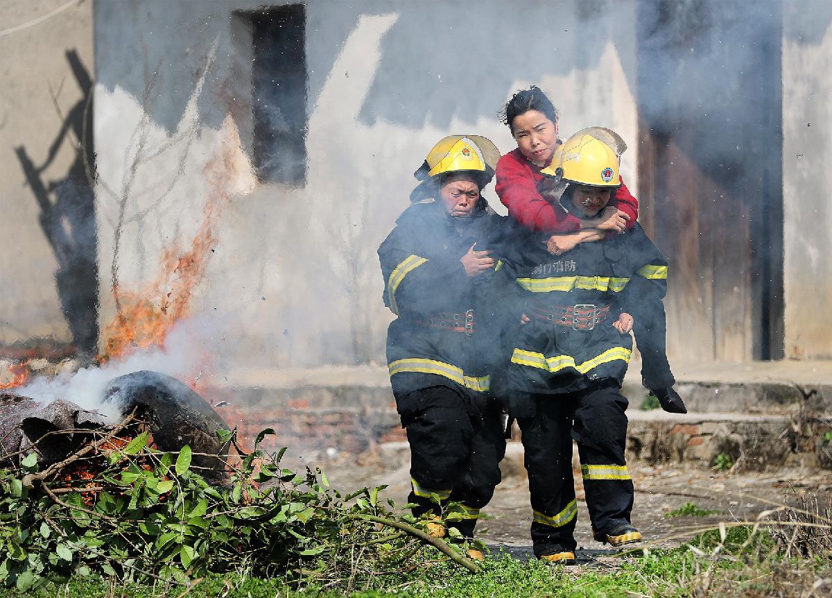 3月3日,湖北省荆门市掇刀区麻城镇丁店村,一支由当地农村妇女组成的“巾帼义务消防小分队”正在开展春季防火实战训练。她们身着统一作训服,熟练操作灭火器、消防水带等装备,模拟初期火灾处置全流程。