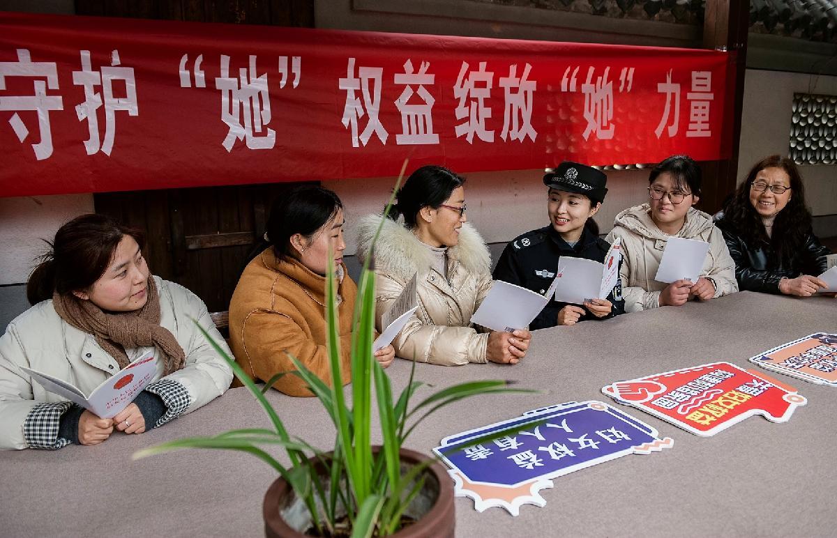 3月4日,安徽省含山县司法局工作人员走进铜闸镇太湖村,开展“守护‘她’权益 绽放‘她’力量”普法宣传,引导广大妇女依法维护自身合法权益。