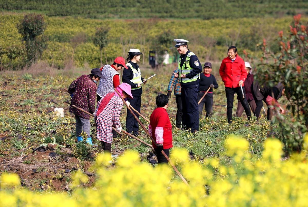 3月6日,安徽省舒城县公安局交管大队联合舒茶派出所走进舒茶镇石塘村茶地,为群众送上“交通安全锦囊”。