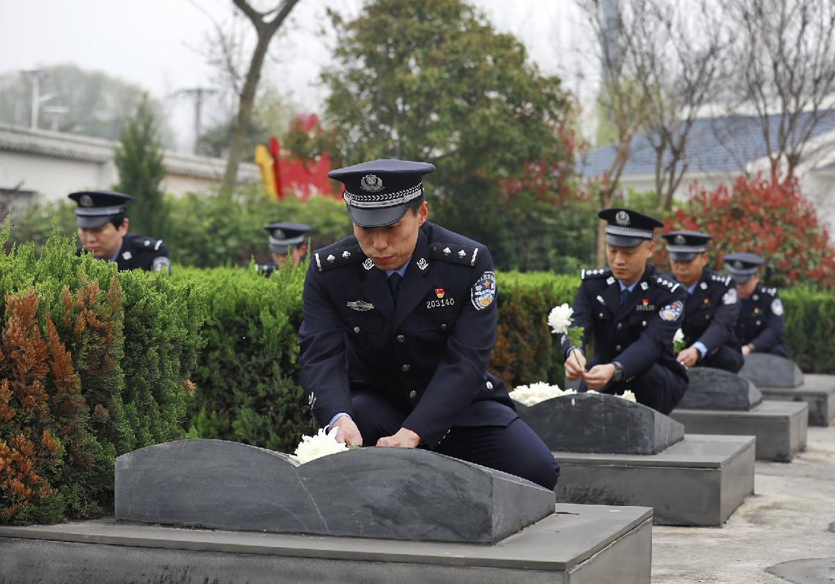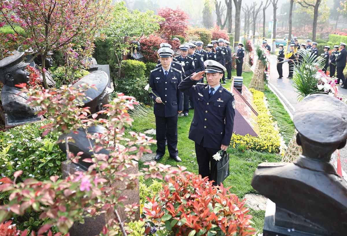 4月1日,安徽省合肥市公安局交管支队组织民警辅警代表在大蜀山文化陵园开展清明祭扫活动。