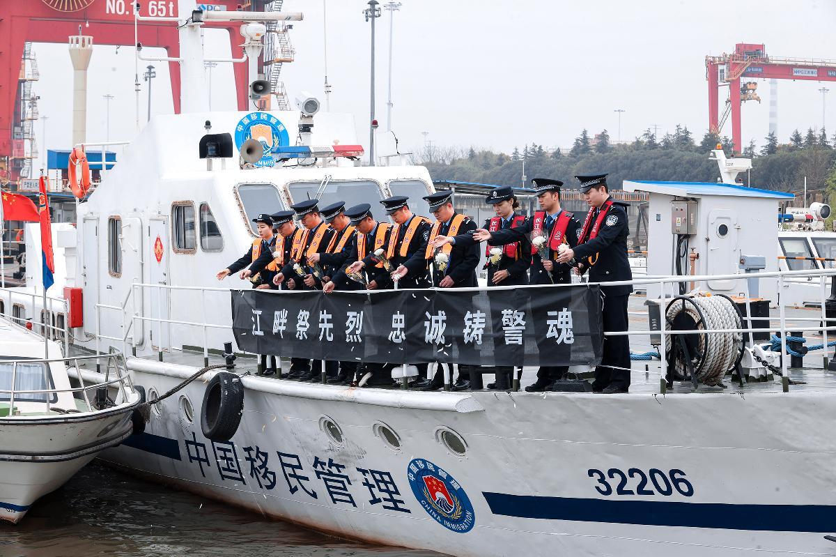 3月31日,镇江边检站联合长航公安局镇江分局镇江派出所在长江江苏镇江段经开区水域开展“江畔祭先烈 忠诚铸警魂”主题活动。
