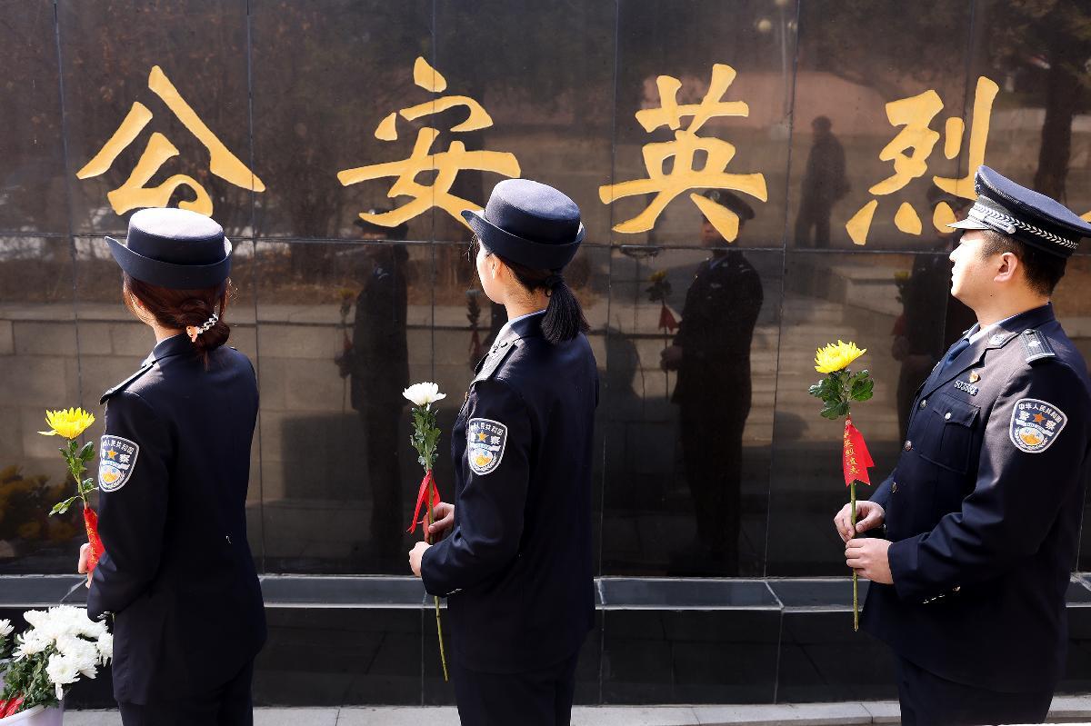4月1日,辽宁省本溪市公安局组织民警辅警在本溪市烈士陵园公安英烈广场,举行以“承英烈遗志 做忠诚卫士”为主题的清明节缅怀英烈祭奠活动。