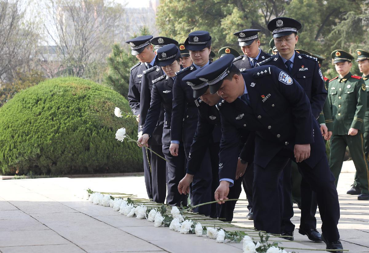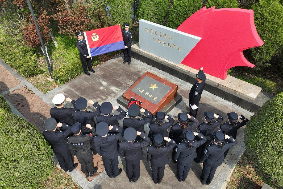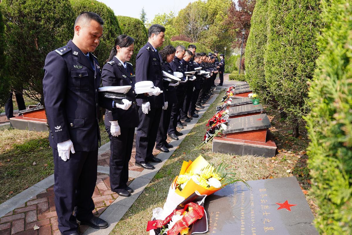 4月1日,安徽省广德市公安局组织民警来到烈士陵园,缅怀革命先烈英勇事迹,传承革命优良传统,重温入警誓词,铸牢忠诚警魂。
